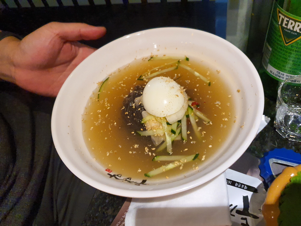 술은 더 마실 수 있는데 배는 부르고.. .하지만 후식은 먹어야한다. 물냉면이나 비빔냉면을 추천한다. 필자와 같이 냉면을 싫어하는 사람이라면 소주 한잔에 육회나 누룽지도 있으니 고기로 배를 채우고 마무리로 후식을 먹는건 당연하다.