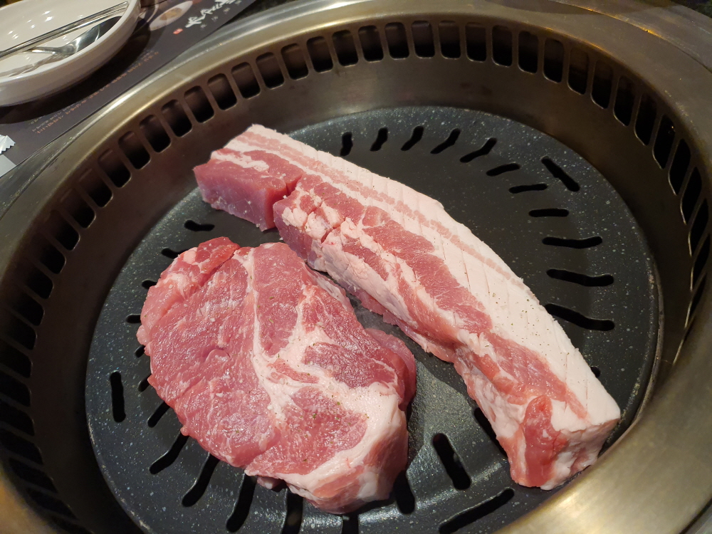 이 곳은 회식 장소로 좋은 이유는 예약에 따라서 룸식으로 구성되어 있어 이야기하기에 좋다. 더군더나 고기를 직접 구워주니 누구 하나 총대를 메고 고기를 태워먹을 일도 없으며 깔끔한 구성과 냄새가 옷에 배지 않는 다는 점에서 누구라도 좋아할 수 밖에 없는 구성으로 되어 있다. 거기에 겉은 바삭하고 속은 부드럽게 익어버리는 삼겹살과 목살 그리고 소맥 한잔이라면 부장님이 싫어할 수가 없는 구성이다.