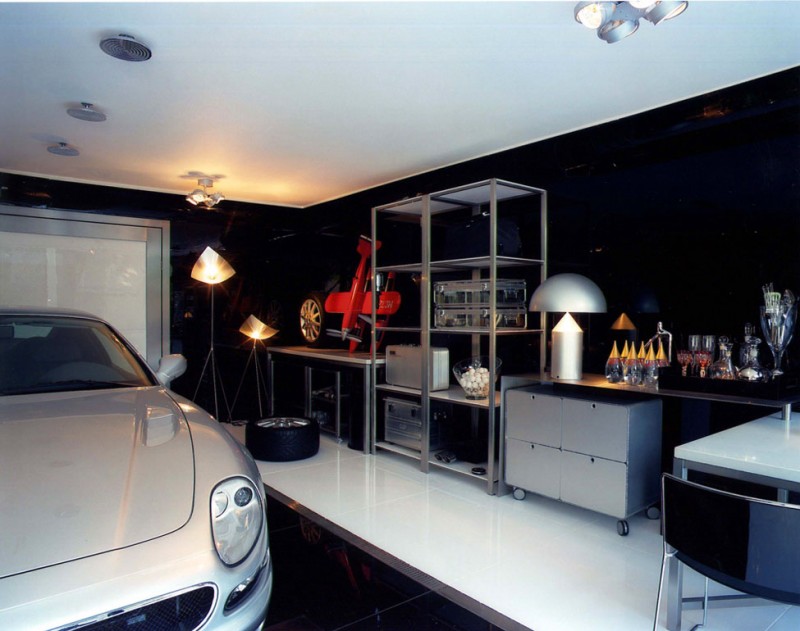 게러지 안 쪽은 차량 1대가 주차될 수 있는 공간을 가지고 있으며 차량을 수리할 수 있는 공구와 타이어 그리고 취미 활동을 할 수 있는 공간으로 구성되어 있ㅇ다. 양쪽을 대칭으로 이루어지고 있는 만큼 꽤 매력적인 모습을 보여주고 있다.