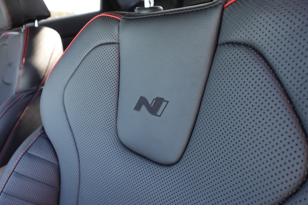 가장 눈에 띄는 부분은 바로 스포츠 버킷 스타일 시트이다. 볼스터부를 강화하여 코너링에서 운전자의 몸을 지탱해줄 수 있는 스포츠 전용 시트로 수동으로 제어할 수도 있지만 전동식으로 시트를 조절할 수 있으며 시트 형상 또한 다른 스포츠 세단과 비교하더라도 부족함이 없는 디자인을 보여주고 있다. 다만 아쉬운 부분은 옵션적으로 알칸타라 시트를 선택할 수 없는 것이 아쉬운데 차량 가격이나 아직 아반떼 N 모델이 출시되기 전이라는 점을 본다면 기대해볼만하다.