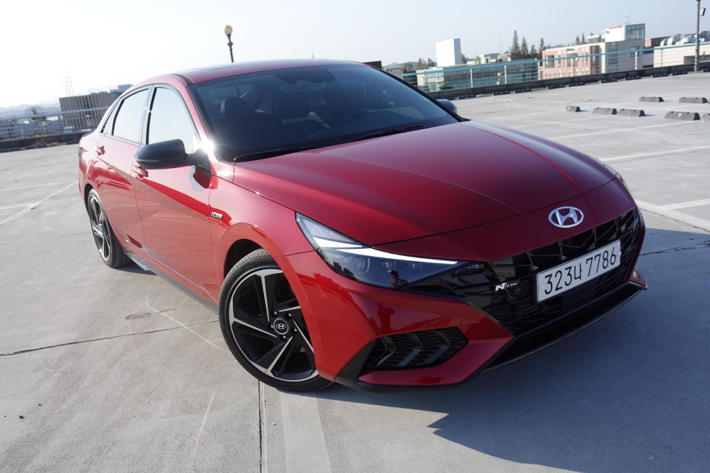 아반떼 기본 모델만 하더라도 나쁘지 않은 디자인을 보여줬으며 이번 N Line은 좀 더 공격적인 모습으로 상당히 좋은 디자인을 보여주고 있다. 사실 아반뗴 N Line의 공격적인 디자인에 대해서도 칭찬하고 싶지만 좀 더 칭찬하고 싶은 부분은 최근 출시된 쏘나타 N Line과 디자인 아이덴티티를 공유한다는 점이다. 범퍼 하단의 디자인이나 에어덕트 부분의 디자인을 공유하고 있는데 기존 모델마다 다른 디자인 아이덴티티는 전통시장에서 판매하던 같은 참기름을 이런저런 병에 담아 파는 느낌이였다면 이제는 백화점 진열장에 전시된 잘 정돈된 느낌이 상당히 만족스럽다.