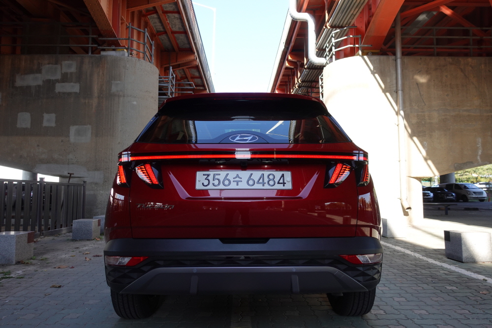 리어 디자인은 사자 발톱 같은 형상의 테일램프 디자인을 보여주고 있으며 두 개의 테일램프를 하나로 이어 굉장히 새로운 디자인을 보여주고 있습니다. 또한 테일램프 안쪽은 전면 파라메트릭 쥬얼 패턴을 아주 작게 미세하게 넣어놨으며 베뉴에서 최초로 시도했던 렌티큘러 렌즈를 적용하여 멀리 서는 좋은 시인성을 가까이에서는 오묘한 느낌을 보여주고 있습니다. 이 뿐만이 아니라 현대자동차 SUV 최초로 와이퍼 자리에 엠블럼을 유리에 평평하게 안쪽으로 넣었으며 와이퍼는 리어 글라스 위쪽에서 숨어있다가 작동되는 히든 와이퍼 기능을 적용했습니다. 기아자동차 카니발 이후로는 두 번째 히든 와이퍼를 적용하여 SUV이지만 좀 더 깔끔한 리어 디자인을 보여주게 되었습니다.