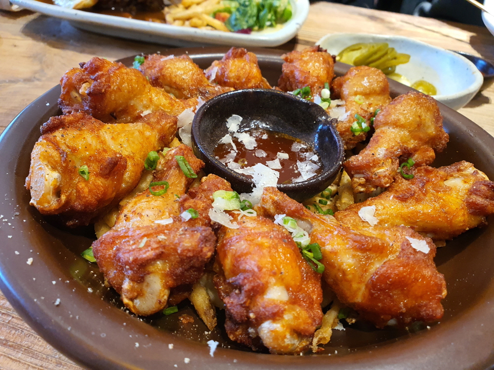 치킨윙스는 맥주 안주로 딱 좋다. 배가 고프다면 파스타 하나로 배를 채우고 다 먹을 때쯤 치킨윙스와 맥주 한잔을 시켜보자 집이 고림동 근처라 고림동 맛집을 찾았다면 파스타와 햄버거 스테이크 그리고 치킨윙스까지 시킨다면 2명이서 생 맥주를 시원하게 할 수 있는 좋은 저녁식사가 될 것이다.