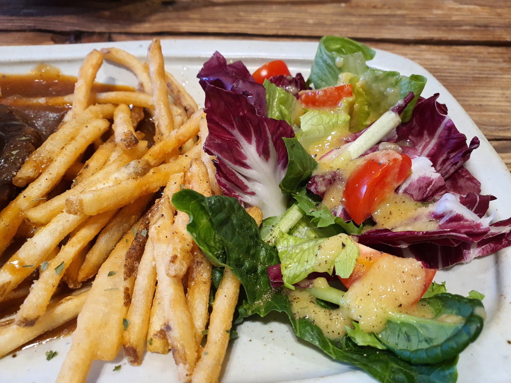 이 곳은 용인 스테이크 맛집이라고 해서 우리가 흔히 알고 있는 스테이크는 아니다. 바로 햄버거 스테이크인데 자극적이지 않으면서 부드러운 고기가 굉장히 인상적으로 메인 메뉴로 훌륭하다. 특히나 곁드림 메뉴로 감자튀김과 숙주볶음을 선택할 수 있다는 점에서 감자튀김을 좋아하지 않으면 숙주볶음을 선택하면 햄버거 스테이크와 굉장히 잘어울린다.