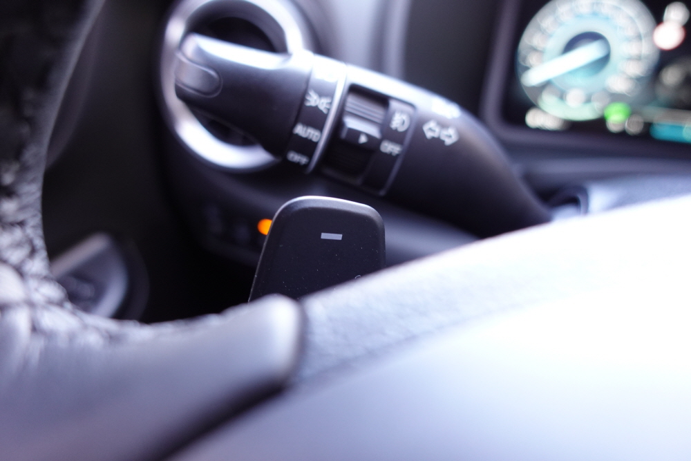 코나 하이브리드 모델에는 주행모드가 따로 없다. 기본적으로 에코모드로 주행이 가능하며 변속 레버를 S로 변경하면 바로 스포츠 모드로 변경된다. 스티어링 휠 뒤에 부착되어 있는 패들 쉬프트는 일반 주행인 에코모드에서는 회생제동 시스템을 3단계로 조절할 수 있지만 스포츠 모드에서는 기어 변속이 가능한 다 기능 패들 쉬프트로 하이브리드는 연비가 좋은 차량에서 주행에 즐거움도 함께 느낄 수 있는 차량이다.