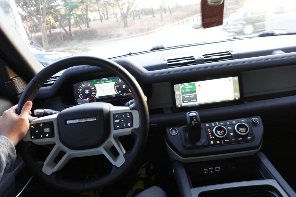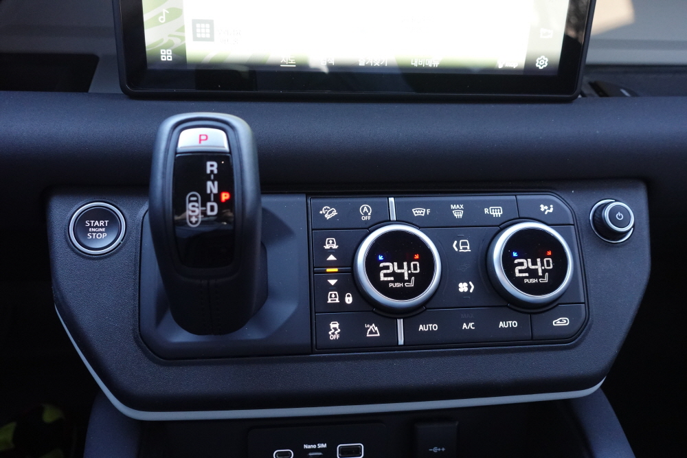 한 가지 또 아쉬운 점이 있다면 주행 중 패들 쉬프트가 없다는 점이다. 재규어와 랜드로버 거의 전 라인업은 다이얼 방식의 기어 변속을 하기에 기본적으로 패들쉬프트가 적용되지만 디펜더 모델에서는 패들 쉬프트를 만나볼 수가 없다.