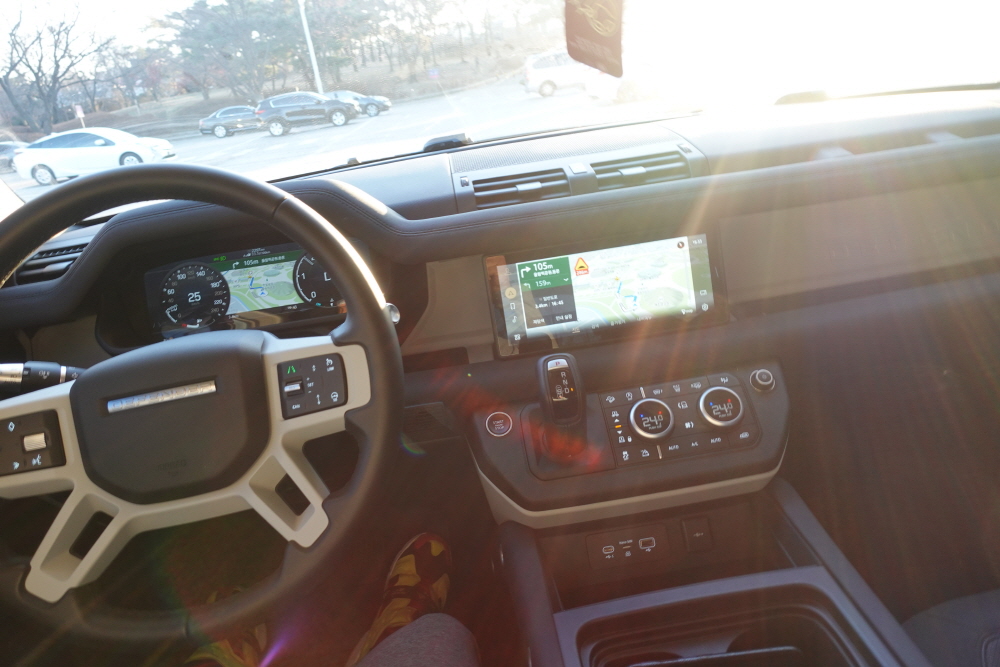 한 가지 또 아쉬운 점이 있다면 주행 중 패들 쉬프트가 없다는 점이다. 재규어와 랜드로버 거의 전 라인업은 다이얼 방식의 기어 변속을 하기에 기본적으로 패들쉬프트가 적용되지만 디펜더 모델에서는 패들 쉬프트를 만나볼 수가 없다.