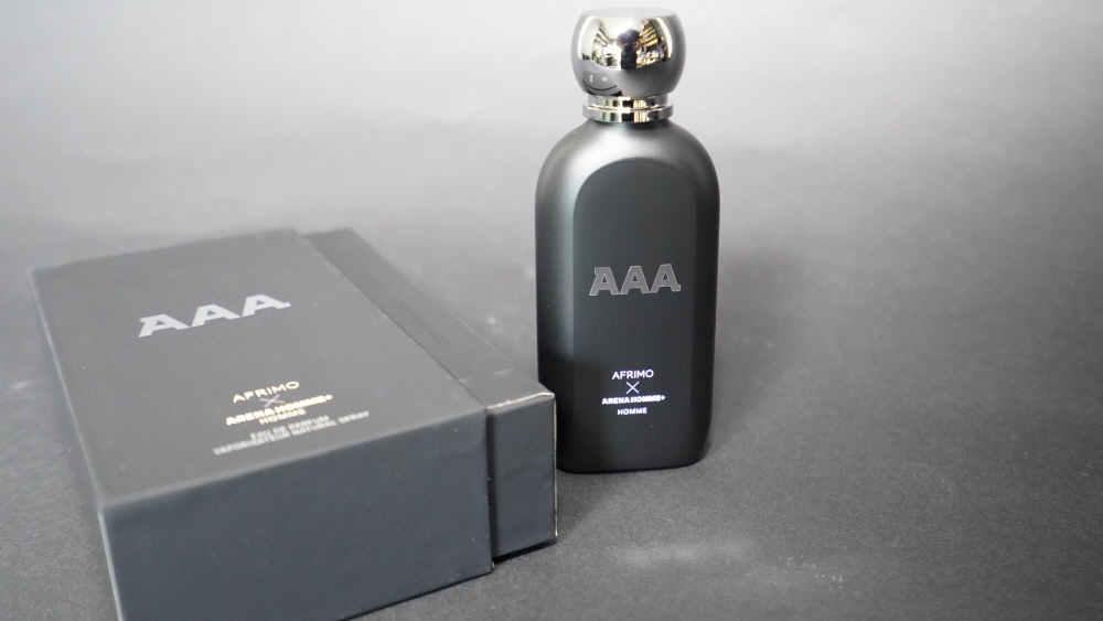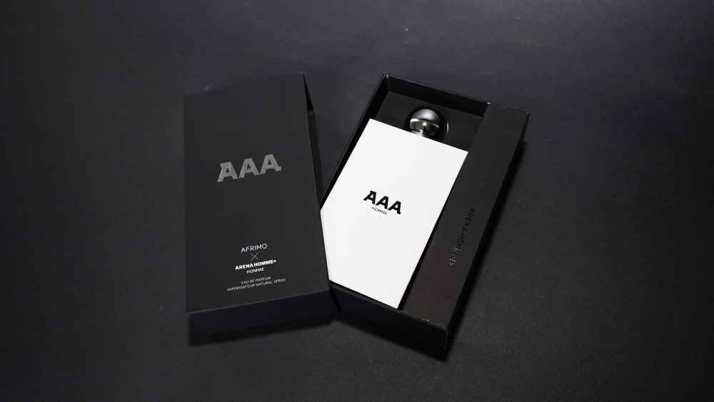이번 남자향수 신제품에 적혀있는 트리플에이 (AAA)는 A Men이라는 뜻과 Afrimo 그리고 Arena Homme +를 의미하는 뜻을 가지고 있으며 아프리모와 아레나옴므 플러스의 콜라보레이션을 의미한다. 이번 새로운 향수 제품의 컨셉은 볼드하고 슬릭한듯한 이중적인 향으로 첫 느낌은 확고한 강렬한 향을 가지고 있으며 그 안네 부드럽고 샤프하면서 모던한 느낌을 주는 향으로 탄내에서 느껴지는 씁쓸한 향으로 어떠한 남자에게도 어울리는 향으로 굉장히 독보적이고 강렬한 느낌을 전달하고 있다.