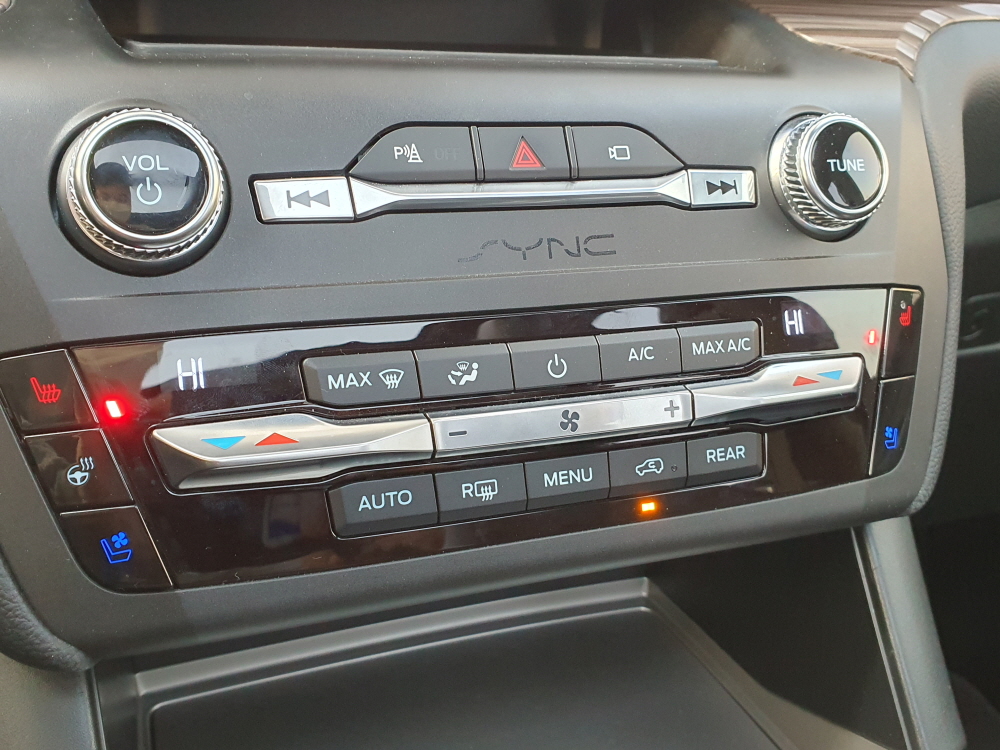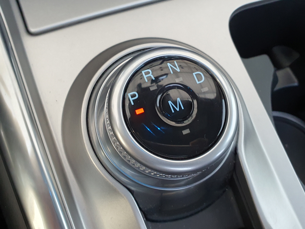 포드 익스플로러 기어 변속기는 다이얼 방식이다. 최근 제네시스의 기어 변속기와 비슷한 형태지만 조금 다른 느낌인데 제네시스는 변속하고 싶은 기어 단수를 변경하면 다이얼이 갔다가 다시 돌아오는 방식이지만 포드는 아예 이동하는 방식이다. 사실 현대자동차의 최신 기어 버튼 기어 변속기 또한 포드의 상위 브랜드인 링컨에서 먼저 적용한 방식이다.