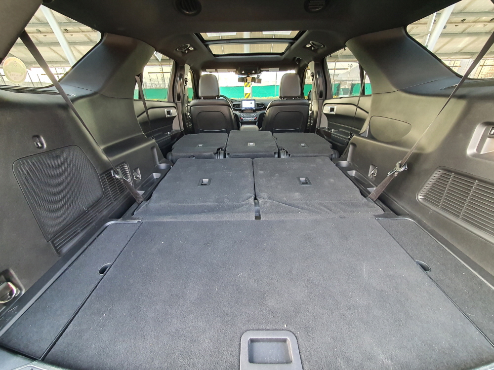 포드 익스플로러는 기본적으로 7인승으로 총 3열 공간까지 제공하고 있다. 3열까지 탑승하고 트렁크 공간을 사용하면 515리터로 캐딜락 에스컬레이드보다 넓은 크기를 가지고 있다. 여기서 3열을 접었을 경우는 1,356리터 / 2열까지 접게 된다면 총 2,486리터까지 트렁크 공간을 사용할 수 있기에 2인 혹은 4인 가족이 캠핑하기에 굉장히 편리한 구성으로 되어 있다.