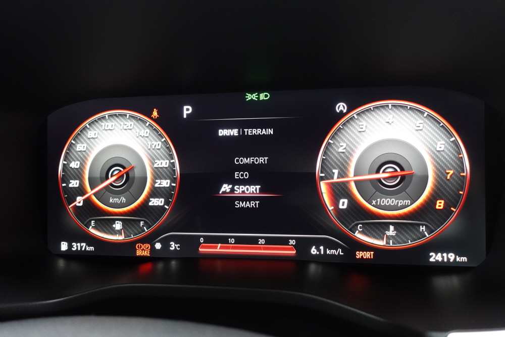 2.5 가솔린 터보 엔진은 기존 2.0 가솔린 엔진에서 단순히 배기량만 높아진 느낌은 아니다. 실제 마력이나 토크의 수치가 가 상승했다고 생각하고 주행하더라도 실제 체감적인 만족감은 더 좋은 편이다. 특히나 고속주행에서 훨씬 안정적이고 좋은 가속감을 보여주는 편이다. 다만 아쉬운 점이 있다면 스포트 모드로 급 가속할 경우 연비는 기존 2.0 가솔린 터보 엔진보다 좀 더 떨어지는 수준을 보여준다. 하지만 안전 속도에 유의하면서 안전 속도로 주행하면 훨씬 더 좋은 연비 효율을 보여준다.