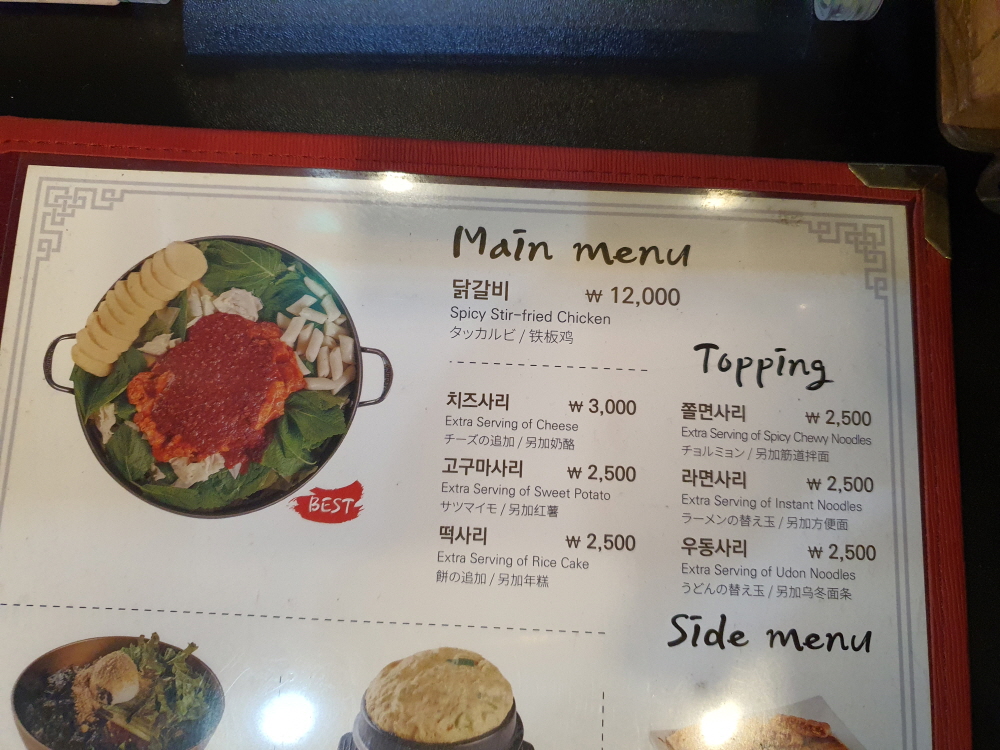 1인분에 12,000원으로 비교적 괜찮은 가격으로 맛을 볼 수가 있다. 여기에 다양한 사리를 추가할 수 있다는 점에서 춘천식 닭갈비와 비슷하다는 점이 꽤 매력적이다. 하지만 성인 남성인 경우에 좀 더 넉넉하게 1~2인분을 추가로 시키는 것을 추천한다.