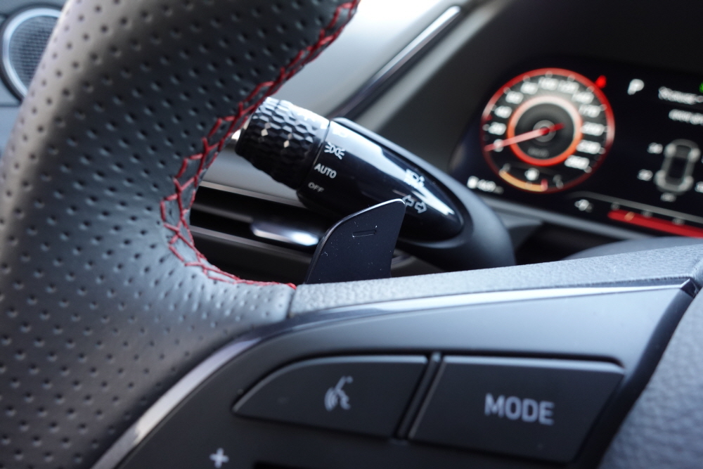 스티어링 휠은 아쉽게도 크게 변화된 느낌을 주지 않는다. BMW와 같은 브랜드들은 일반 모델과 스포츠 모델을 구분하는 가장 첫 번째 방법이 스티어링 휠이라는 점에서 스티어링 휠을 감싸는 소재나 디자인은 다소 아쉽고 N 로고 하나만 들어가 있다.