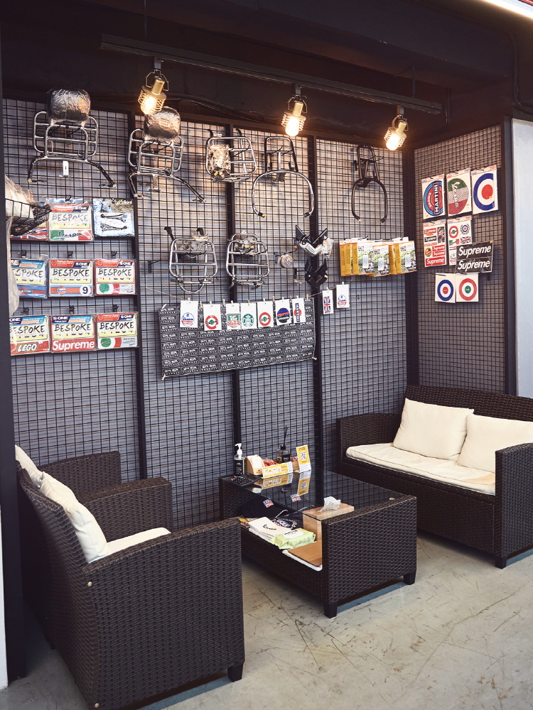 이 곳은 단순히 커피 한 잔과 바이크만 판매하지 않는다. 순정 베스파 엔진오일인 캐스트롤을 기본으로 정비에 사용하고 있으며 고객 취향에 따라서 GTS 모델같이 고성능 모델 같은 경우에는 순정 엔진오일이 아닌 리퀴몰리 엔진오일로 교체하기도 한다. 보통의 바이크는 사계절을 타지 않기 때문에 겨울에 봉인하기 전 오일을 빼고 다시 따뜻해지는 봄에 오일을 새롭게 넣지만 사계절 탈 수 있는 스쿠터 모델이며 특히나 겨울이 짧고 따뜻한 부산 특성상 롱타임이면서 좋은 오일을 찾는 고객이 많아 부산 베스파 및 다른 스쿠터 전문점에 없는 리퀴몰리 엔진오일과 연료첨가제를 만나볼 수 있는 곳이다.