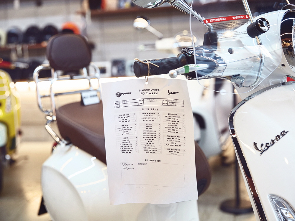 또한 정비를 맡기면서 편안하게 커피 한 잔하면서 기다릴 수 있으며 바이크 구매 상담까지도 받을 수 있다. 베스파 바이크는 할부 / 리스 등 다양한 금융상품으로 구입할 수 있기 때문에 자동차에 비하여 비교적 저렴한 가격대에 구매 가능하며 날씨가 따뜻한 부산에서는 사계절 타고 다닐 수 있기 때문에 굉장히 매력적인 이동수단이자 나를 표현하는 수단이 바로 베스파이다.