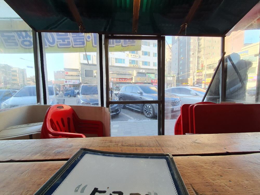 이 곳은 의자 형태로 앉을 수 있는 곳과 바닥에 앉을 수 있는 다양한 테이블이 존재하지만 항상 이 곳에 오면 밖과 안 그 사이에서 먹는 편이다. 왠지 모르게 포차에서 소주 한 잔하는 느낌을 가지고 있기도 하고 조금 큰 테이블이지만 우리만 앉을 수 있다는 점에서 이상하게도 그리 편하지 않은 신월동 술집인 이 위치를 고수한다.