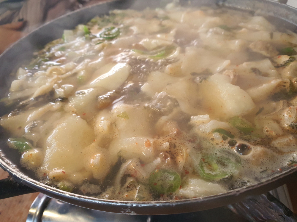 날씨가 추운 겨울 이 곳에서 추천하는 메뉴는 바로 수제비이다. 개인적으로 수제비를 그리 좋아하는 편은 아니다. 어릴때 집안이 힘들때 먹었던 기억 때문인지 커서는 잘 안 먹던 수제비이지만 얼큰하고 뜨끈한 국물은 술 한잔 마시기 전 허기와 차가운 속을 달래기에 충분한 첫 번째 메뉴이다.