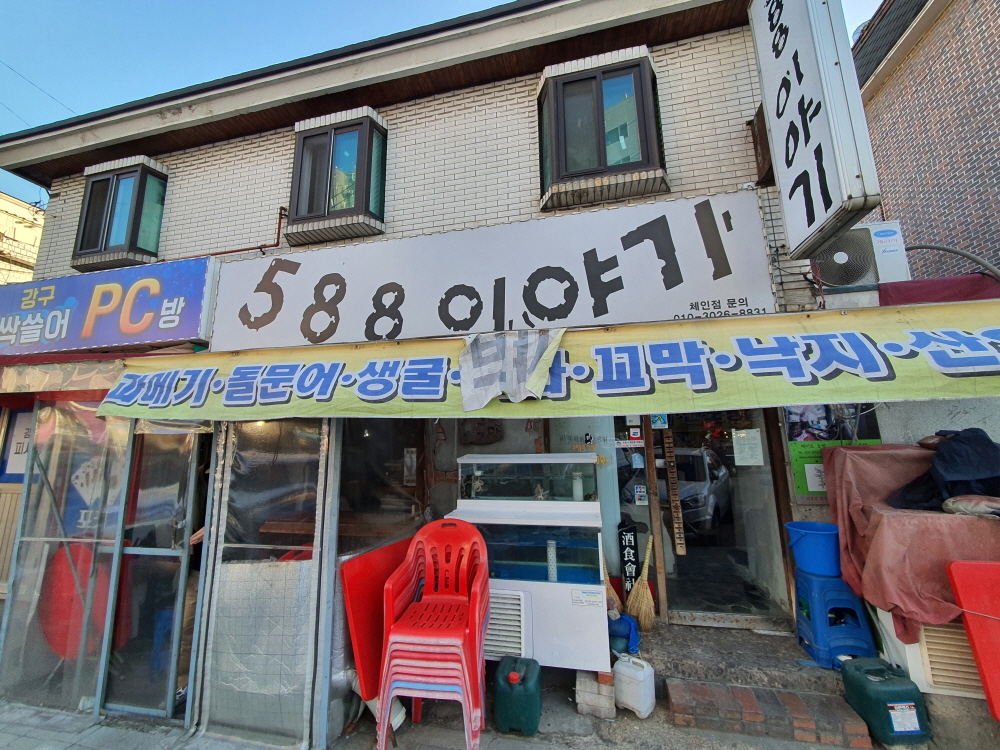 오랜만에 찾는 이 곳은 2호선과 5호선 까치산역에서는 조금 많이 떨어져 있지만 차가 없었던 그 시절부터 맛집들이 많아 자주 찾던 곳이였다. 그 중에서도 신월동 술집하면 가장 먼저 떠오르는 곳이 바로 이 곳 588 이야기이다. 사실 이 곳은 엄청 특별할 것은 없지만 아주 가끔 해산물과 소주 한 잔이 떠오르면 찾고 싶은 그런 곳이다.