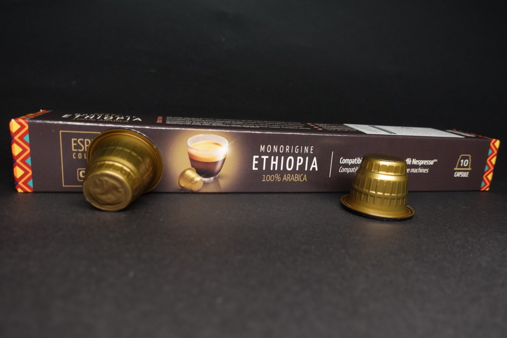 그 다음으로는 황금색의 에티오피아이다. 오리지널 에디오피아에서 생산된 커피로 만든 맛으로 로부스토보다는 바디감이나 고소함은 낮은 편이지만 향긋한 아로마 향이 나는 100% 아라비카 커피 맛이라고 생각하면 좋다. 보다 섬세한 맛을 느낄 수 있는 사람에게는 재미있는 커피이다.