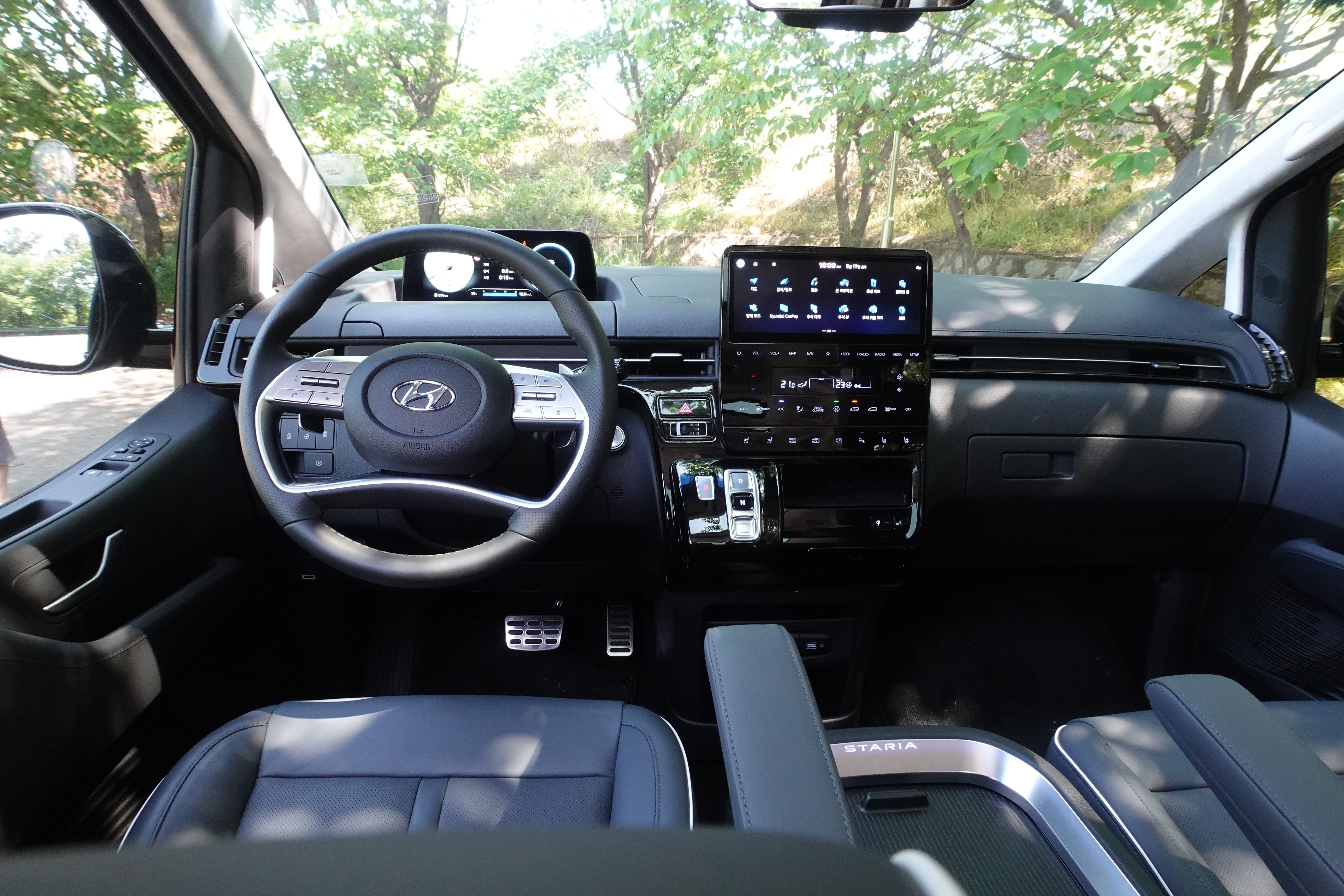 특히나 스타리아의 실내 내부 공간에 대한 배려는 상당히 좋은 편이다. 운전석에는 꽤 많은 숨은 공간이 많아 컵홀더만 최대 4개를 사용할 수 있으며 계기판 앞 부분의 작은 공간이나 스마트폰 무선 충전까지 일반 승용 혹은 SUV 모델보다 더 훨씬 더 만족스러운 부분들을 만나볼 수 있다.