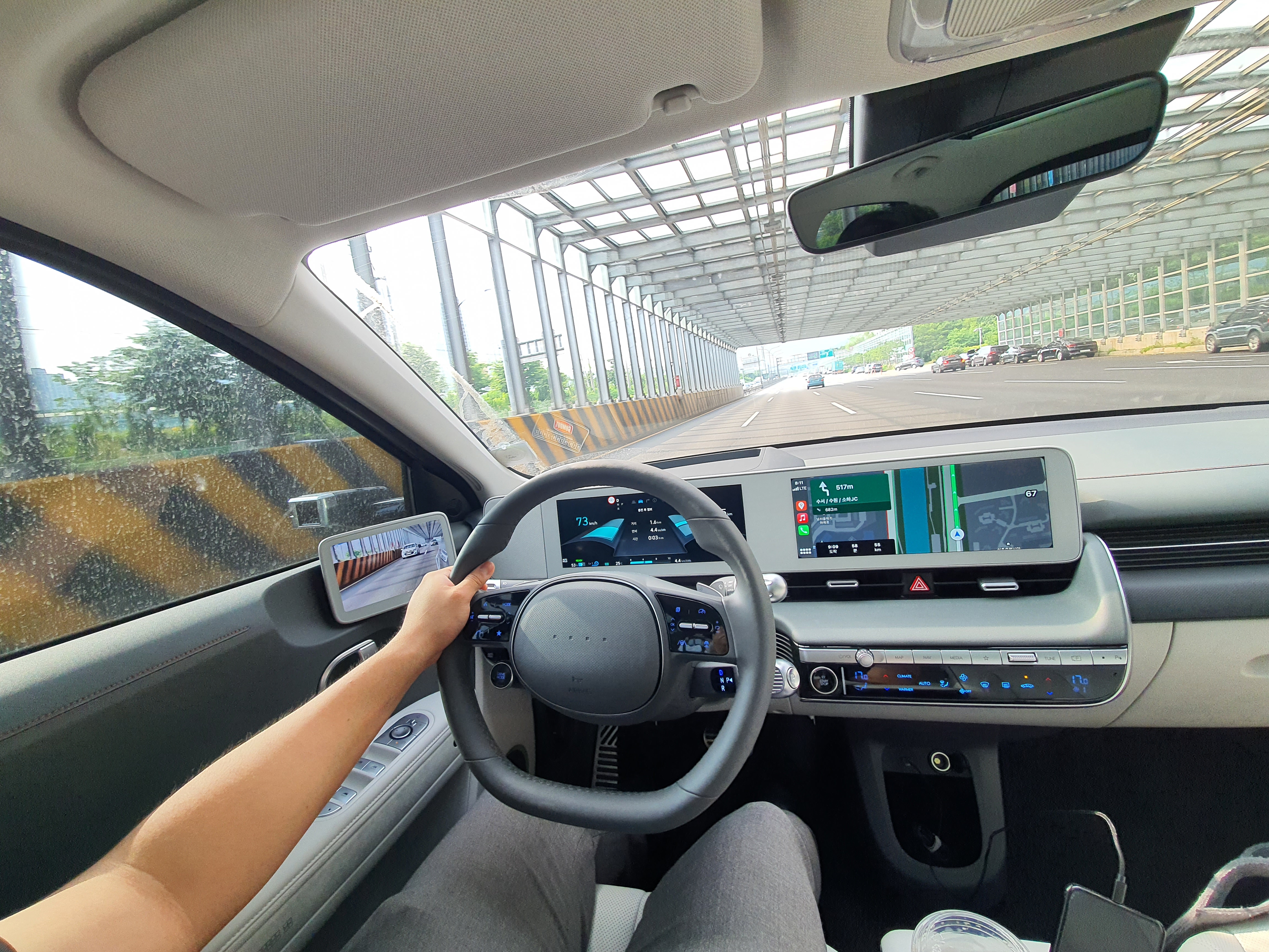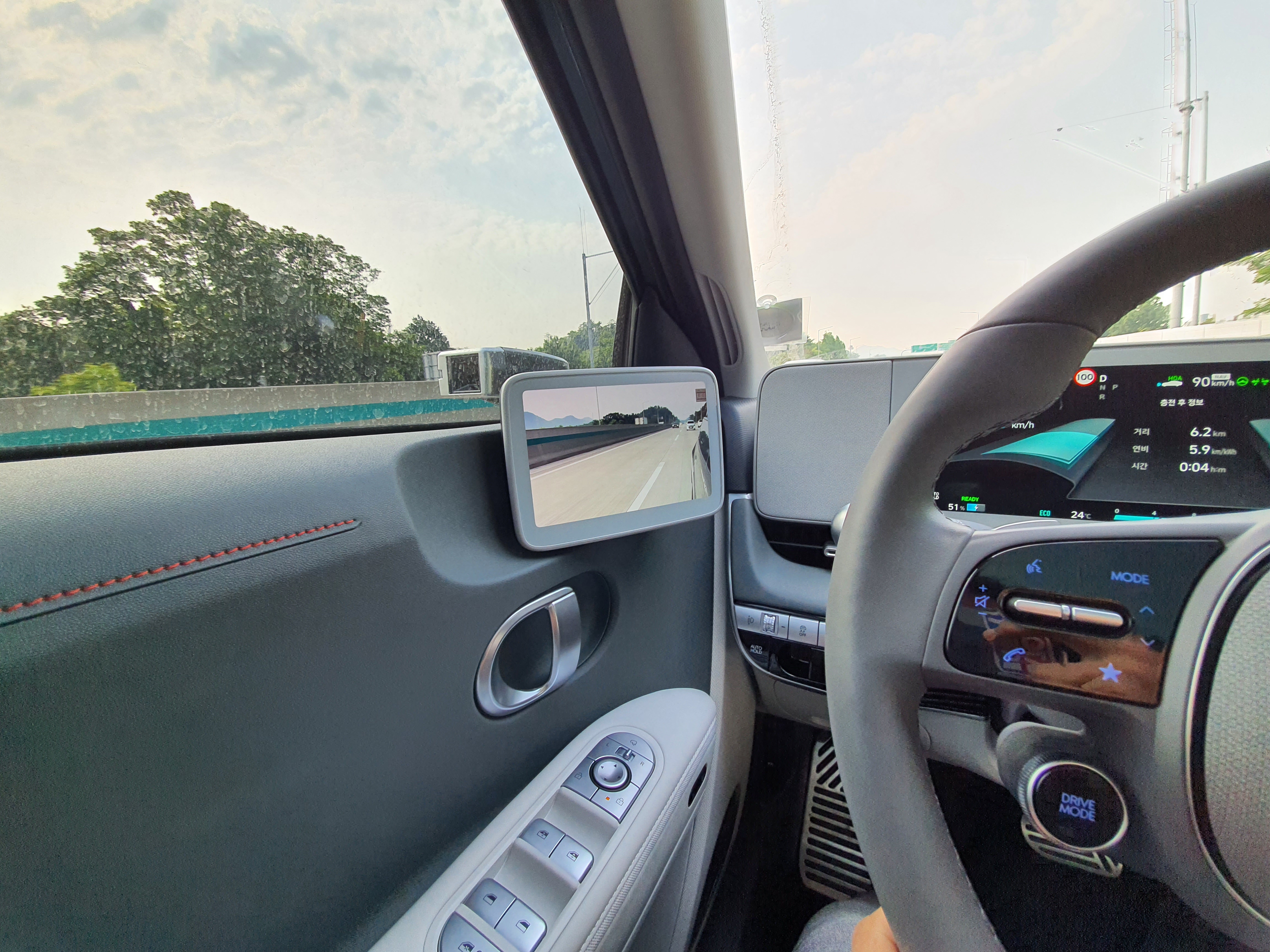 만약에 프레스티지 옵션에서 딱 하나를 선택하라면 디지털 사이드 미러를 추천한다. 130만 원의 가격으로 상당히 높은 가격대를 가지고 있는 옵션이지만 실제 사용해보면 정말 편리함을 느낄 수 있다. 특히나 비오는 날 거울형태의 사이드미러는 잘 안보이지만 디지털 사이드 미러의 카메라 렌즈는 안쪽에 삽입되어 있어서 비가 많이 오더라도 깨끗한 화면을 볼 수 있고 야간에도 시인성이 굉장히 좋다. 또한 특이한 외모의 아이오닉5에 딱 어울리는 형태로 출고 시 장착 안하면 후회하는 옵션 중 하나이다.