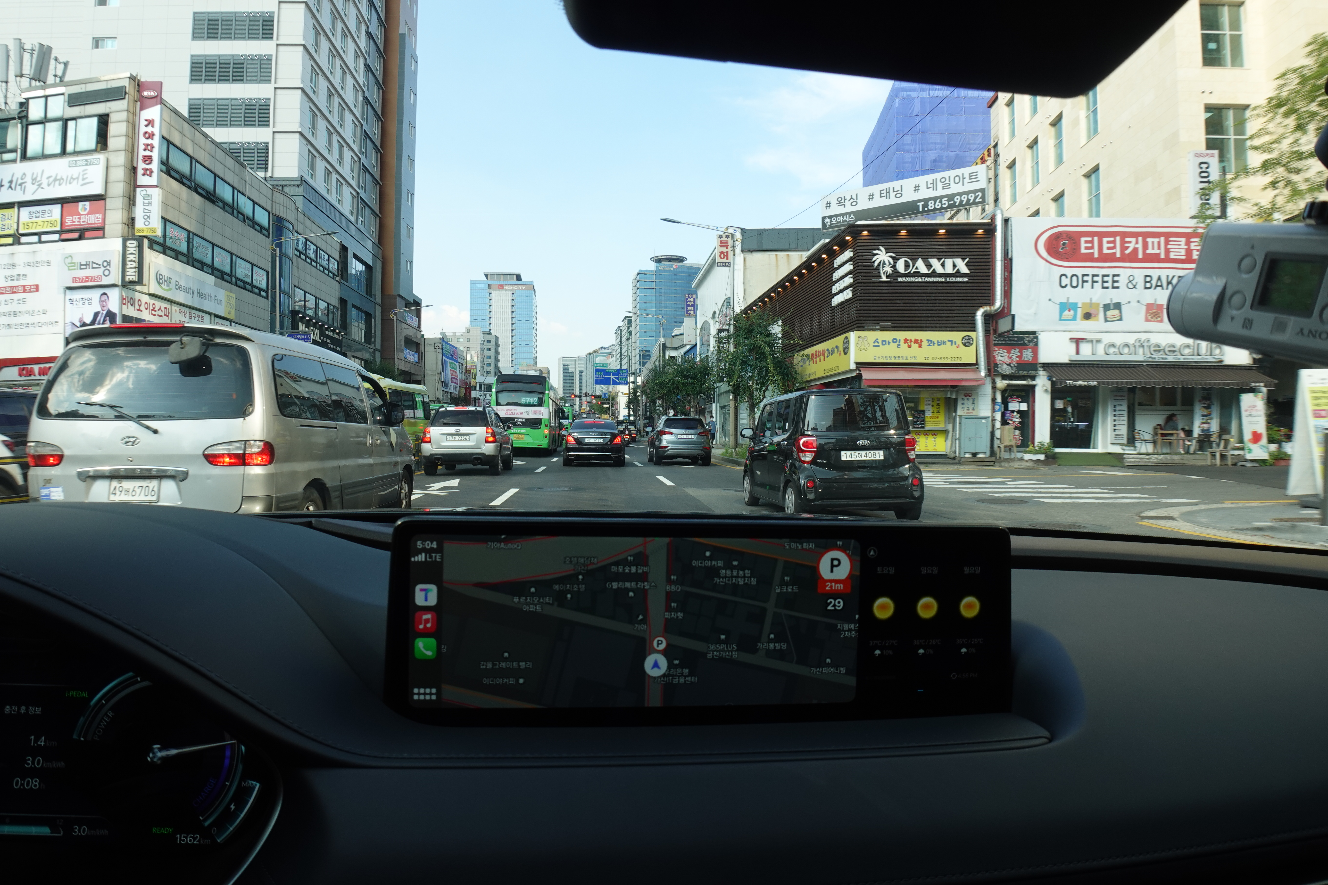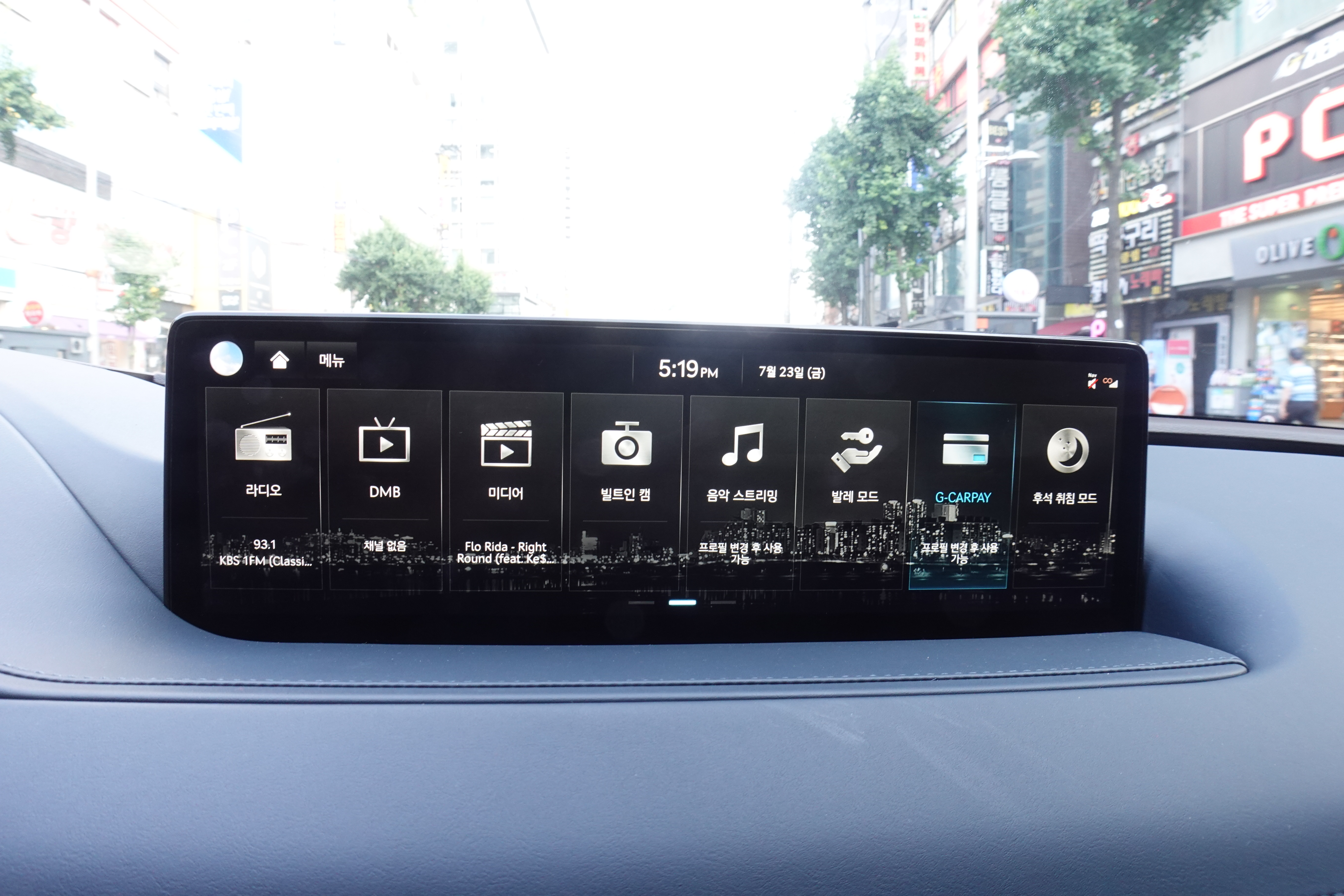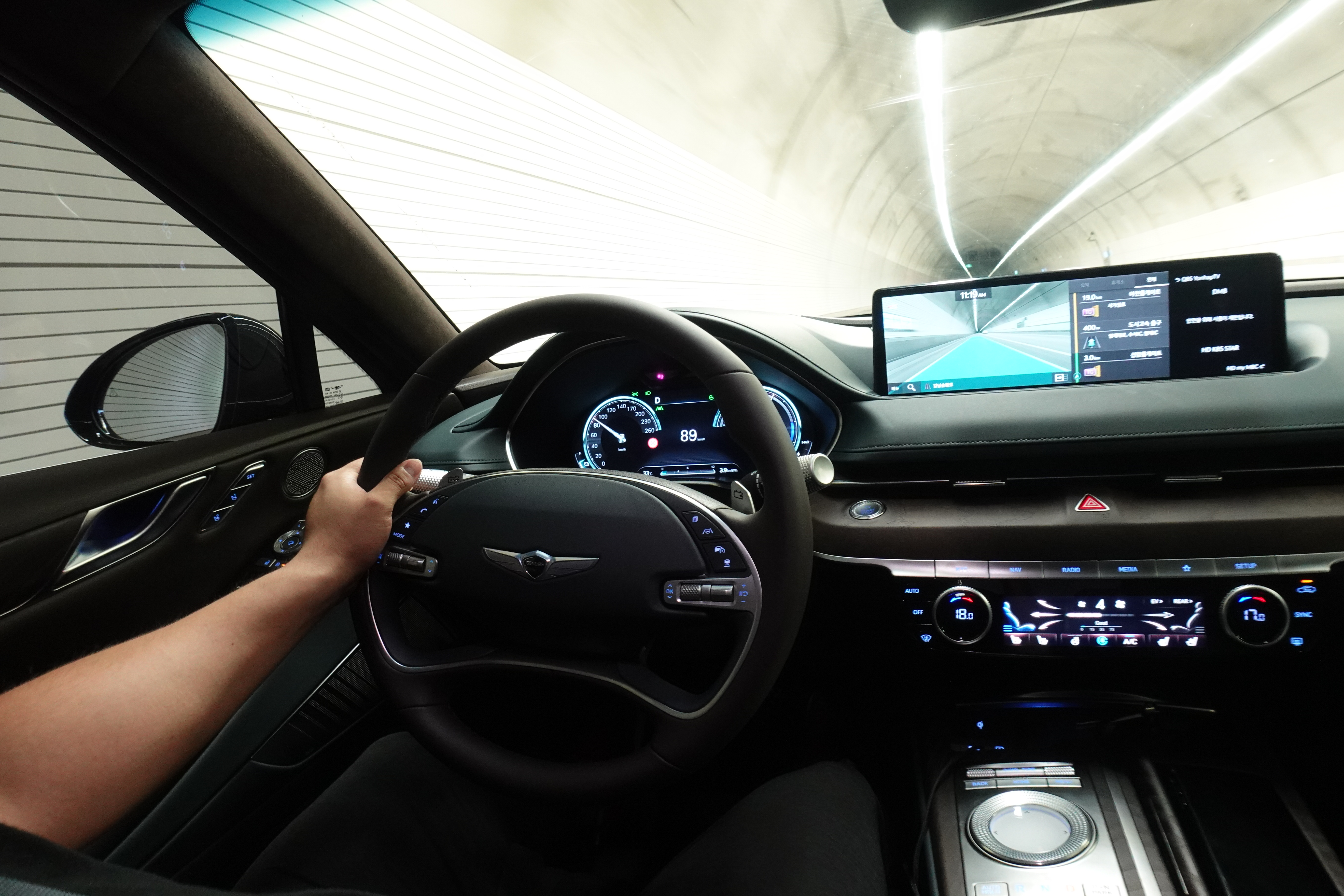 여기에 증강현실 내비게이션은 제네시스 시리즈의 장점인데요. 막히는 도로에서 전방 차량과 간격이 가까울 때 사용하면 좀 더 안전한 운전이 가능하며 과속을 했을 때 증강현실 내비게이션의 파란색 안내선이 빨간색으로 변화되기 떄문에 시각적인 효과도 줄 수 있습니다.