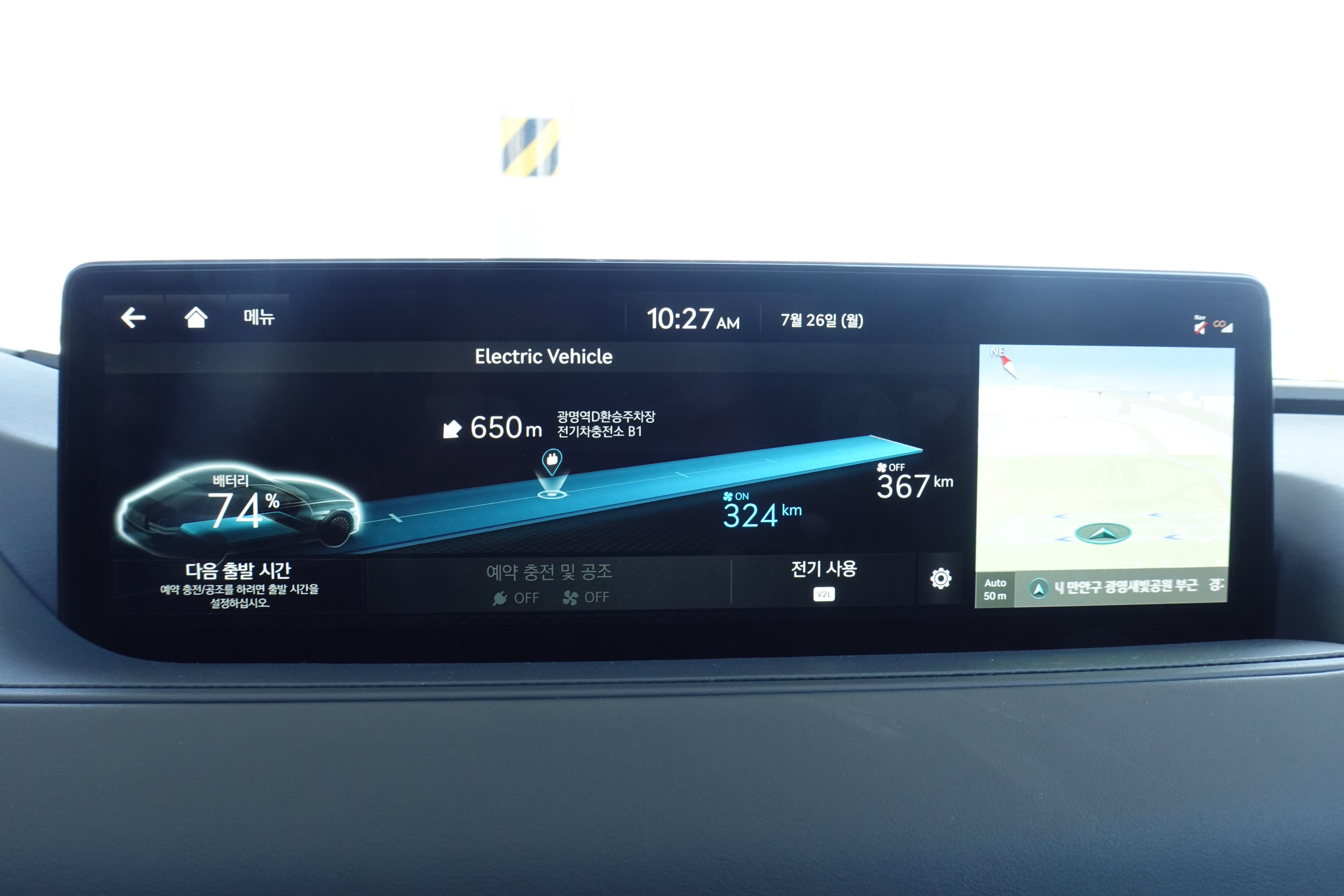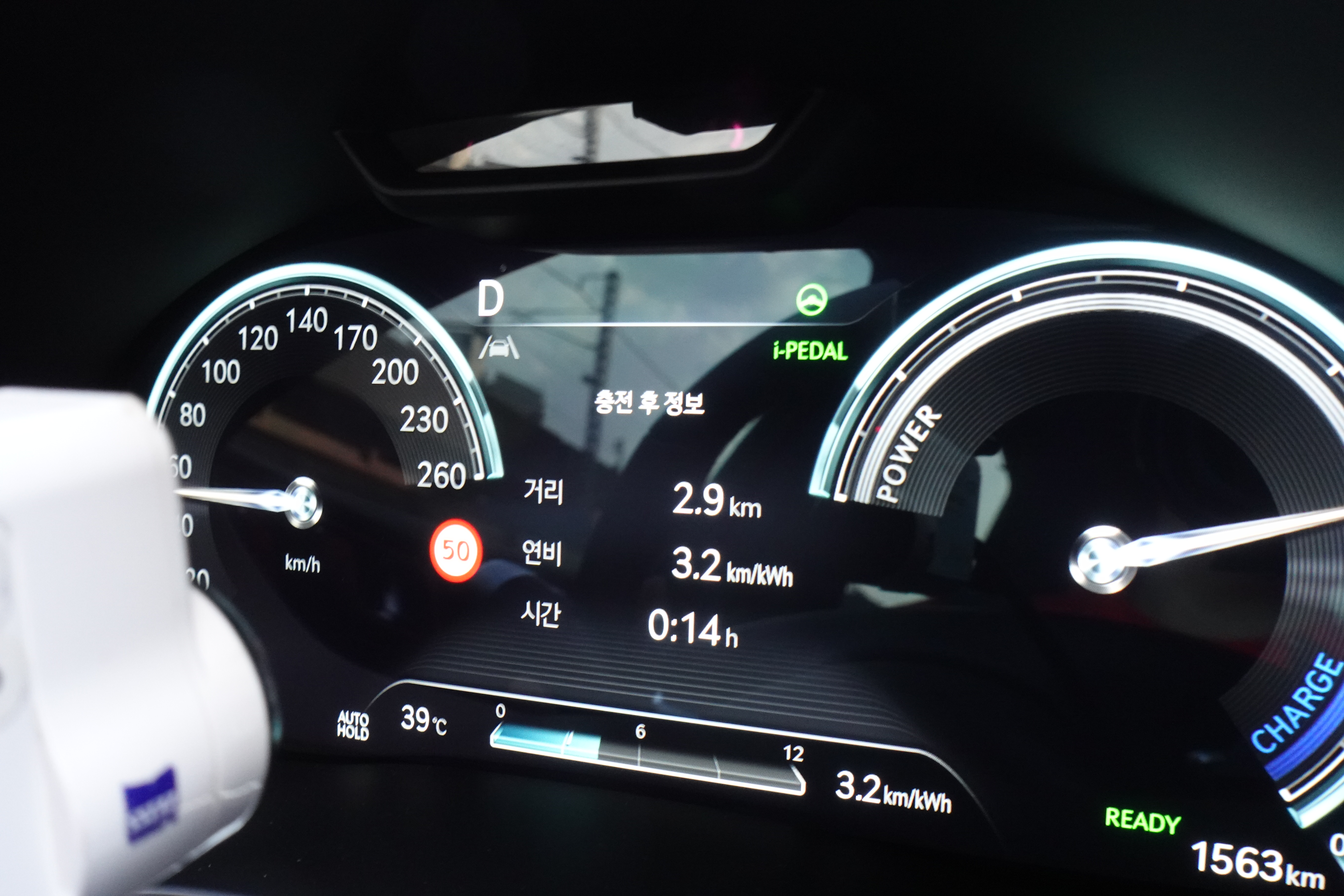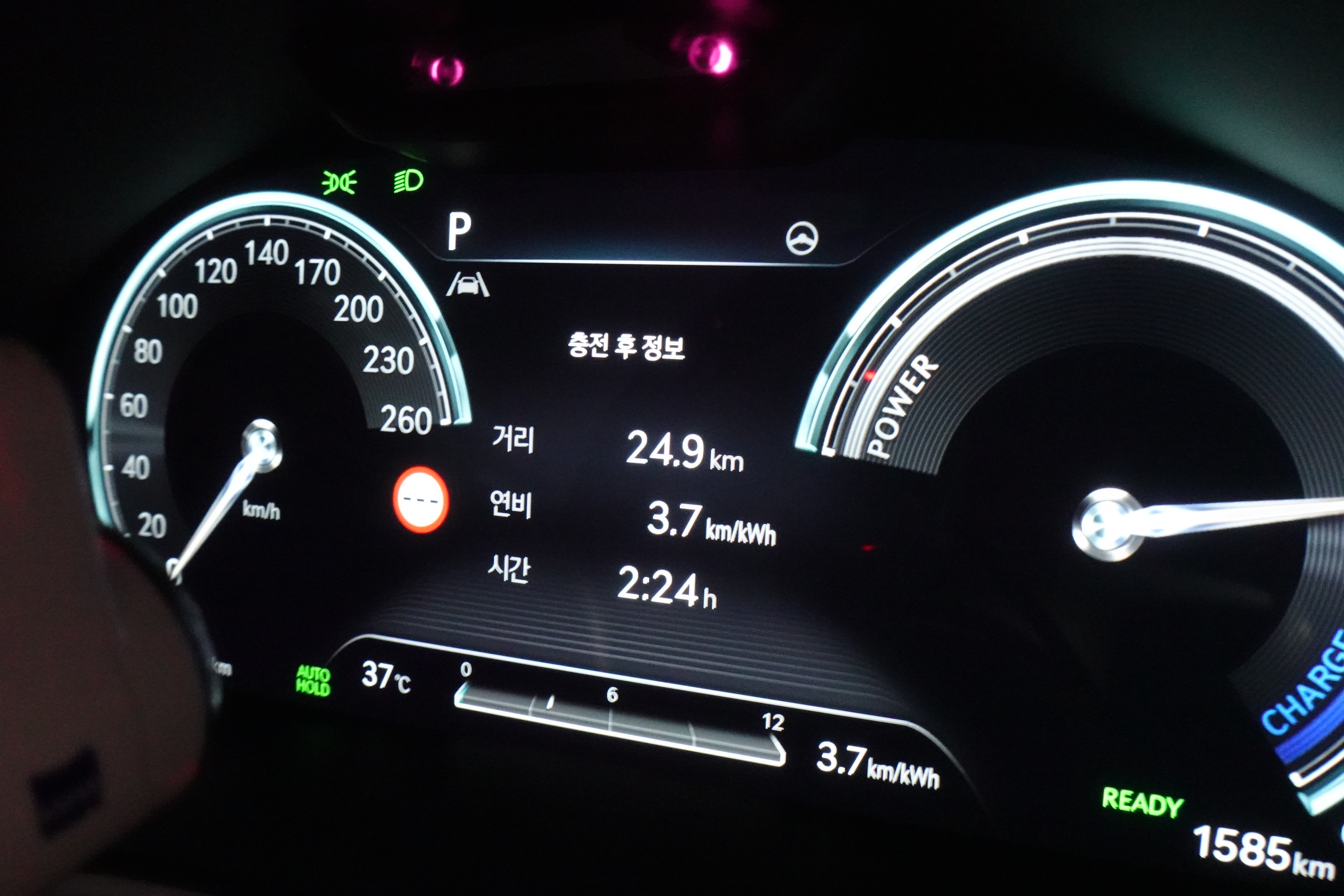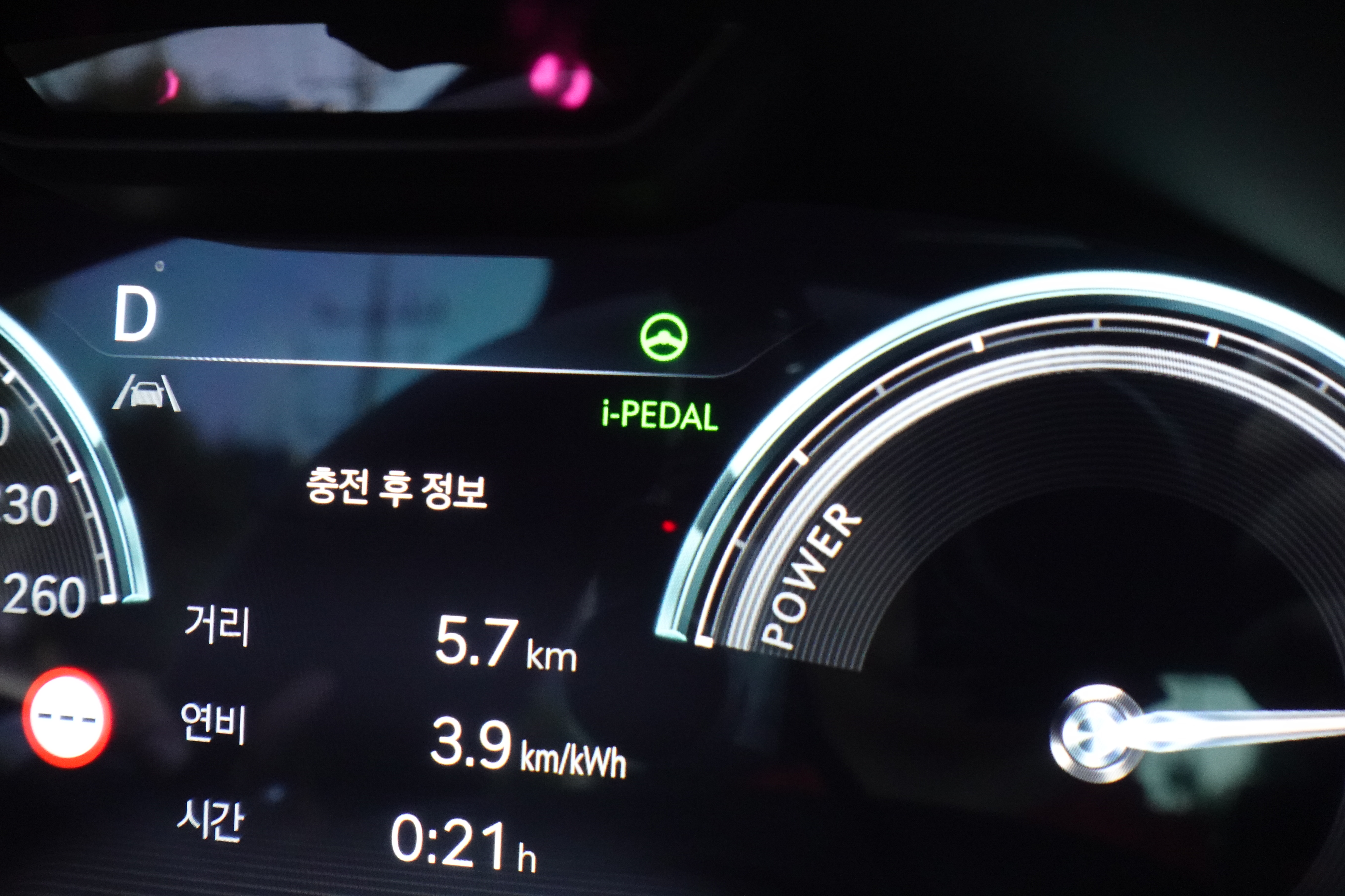 강남 퇴근길 연비테스트 최종 연비는 총 거리 24.9km를 주행하면서 2시간 24분으로 굉장히 많이 막히는 정체를 경험할 수 있었으며 연비는 3.7km/kWh로 공인 시내 연비의 4.5km/kWh 보다는 다소 떨어지는 연비를 보여줬지만 25km 조금 안되는 거리를 2시간 24분이나 걸렸다는 점을 놓고 본다면 충분히 괜찮은 모델이라고 생각합니다. 반면 아이오닉5 2WD 모델 같은 경우는 같은 구간을 1시간 40분 소요되어 6.6km/kWh로 공인 시내 연비 5km/kWh를 넘어서는 모습을 보여 전기차 전용 플랫폼을 사용한 아이오닉5가 강남 퇴근길 연비는 훨씬 좋은 것으로 보여줬습니다.