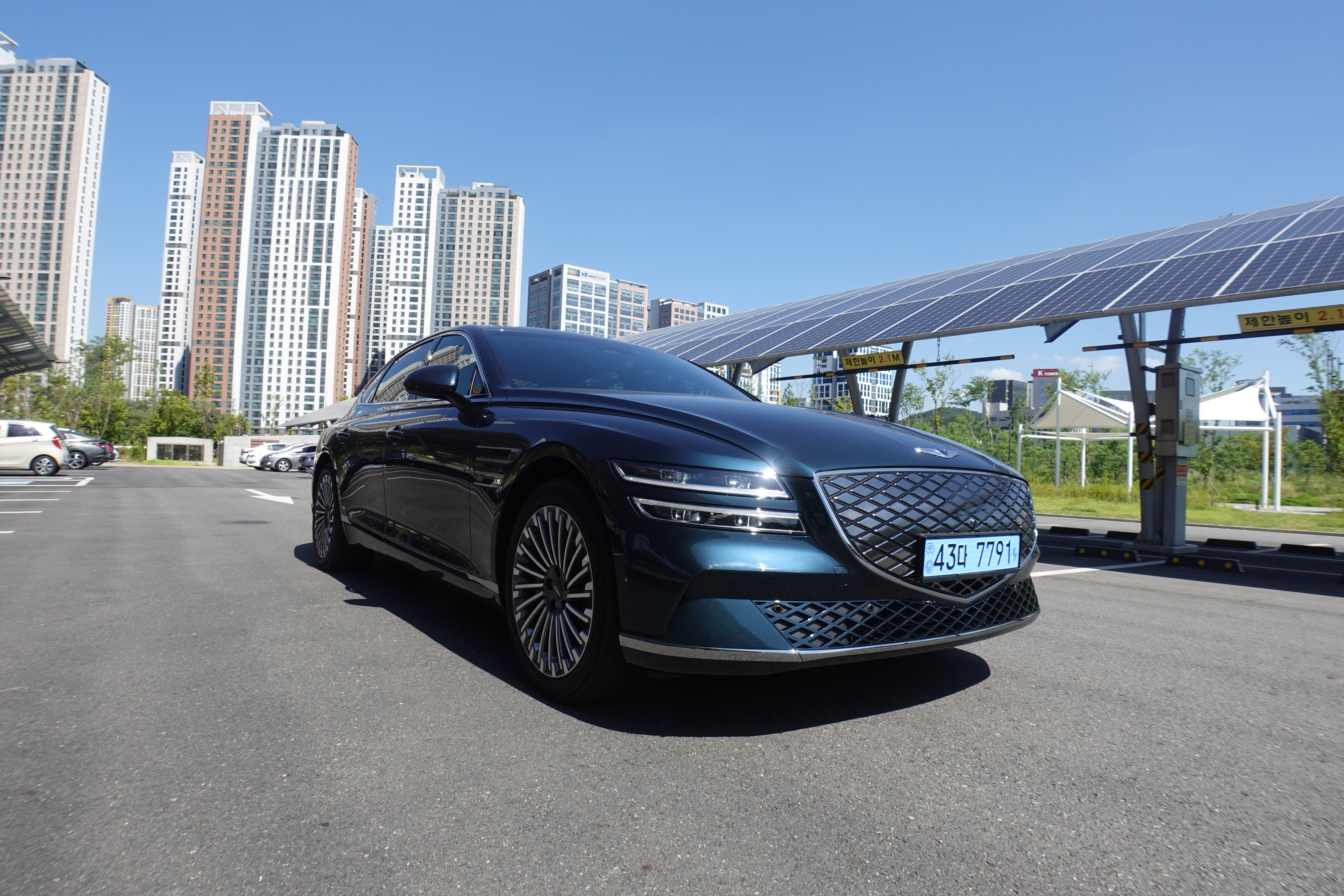 제네시스 일렉트리파이드 G80 모델은 800V급 충전기로 급속 충전 시 22분이내에 10%에서 80%까지 충전이 가능하며 한 번 충전에 427km를 주행할 수 있는 모델입니다.