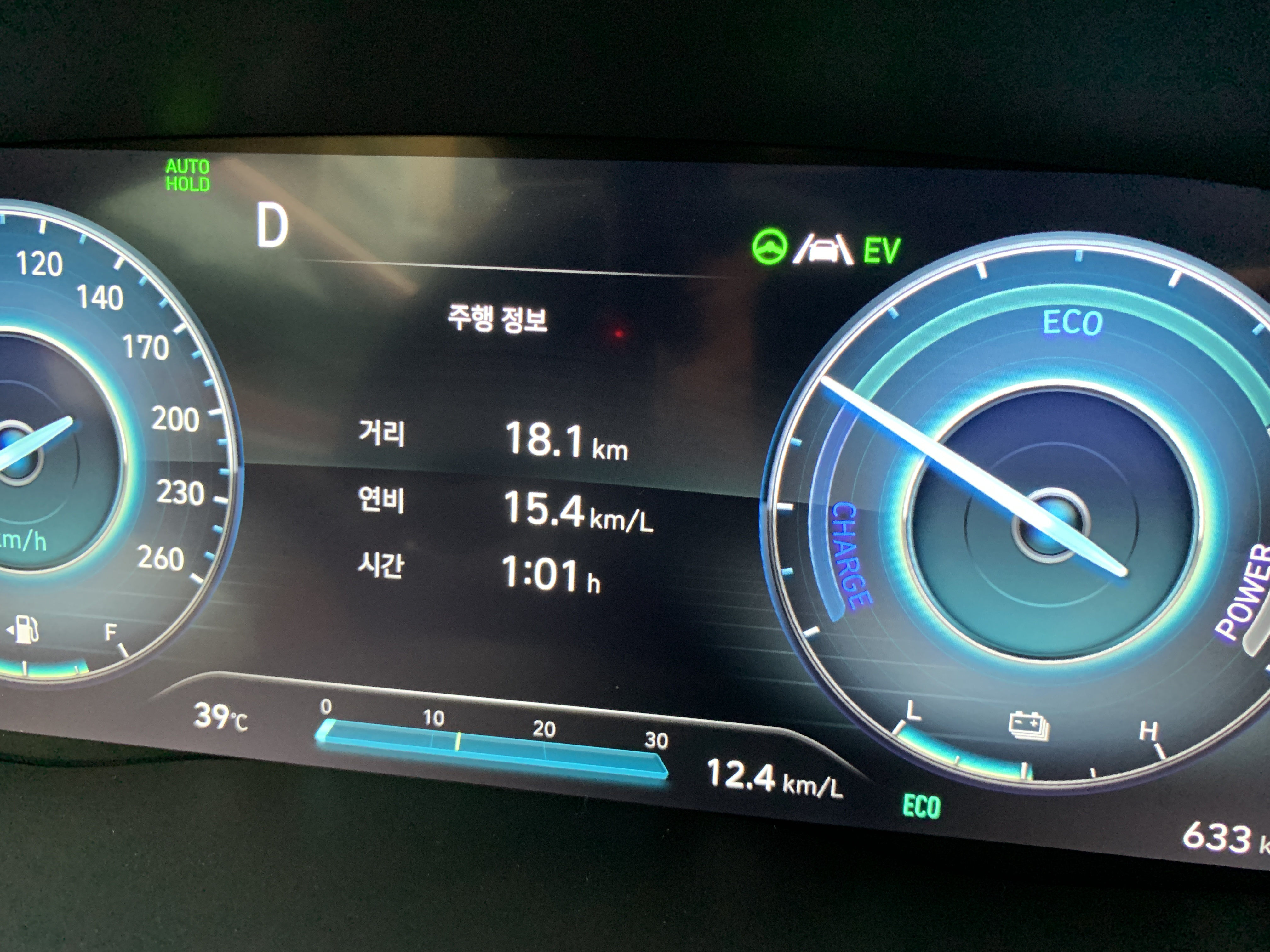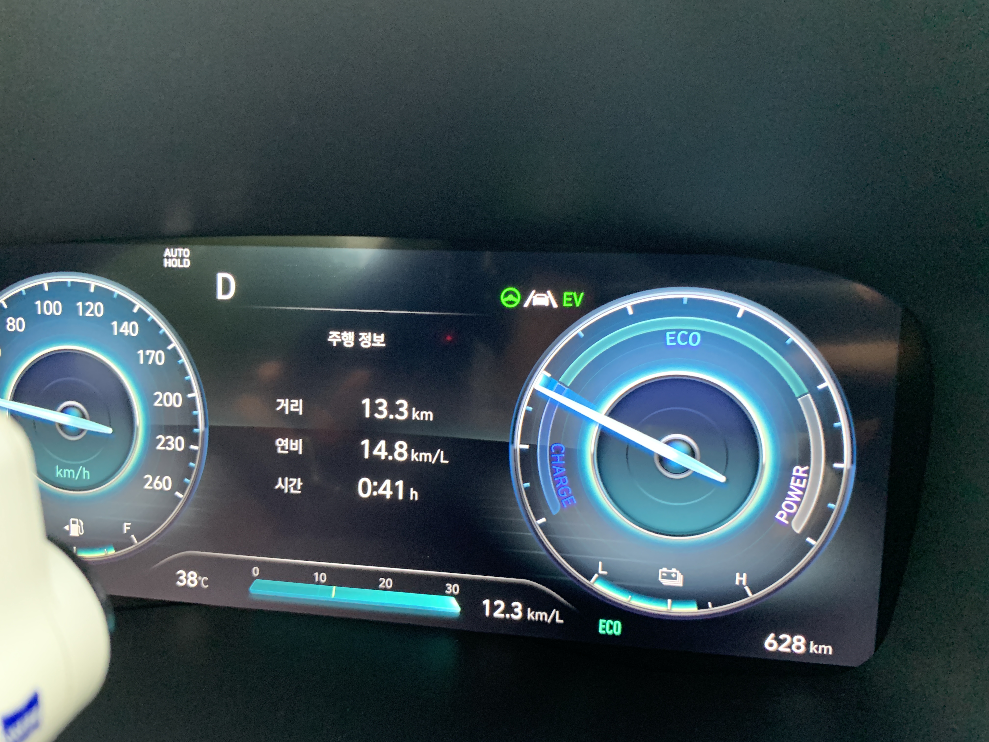 역삼역에 도착했을 때 연비는 15.4km/L로 연비가 점점 높아지는 것을 볼 수가 있었다. 역삼역에서 삼성역까지는 대략적으로 2.3km 구간이지만 강남 퇴근길 중 가장 많이 막히는 곳 중 한 곳이다. 2.3km 구간을 통과하는데 22분정도 소요되었고 연비는 0.9km/L 밖에 떨어지지 않아 생각보다 EV 모드의 개입이 꽤 잦아 연비가 떨어지는 것을 막을 수가 있었다. 또한 정차 중 엔진을 정지시키는 스탑앤고 기능이 활용도가 꽤 괜찮았다.
