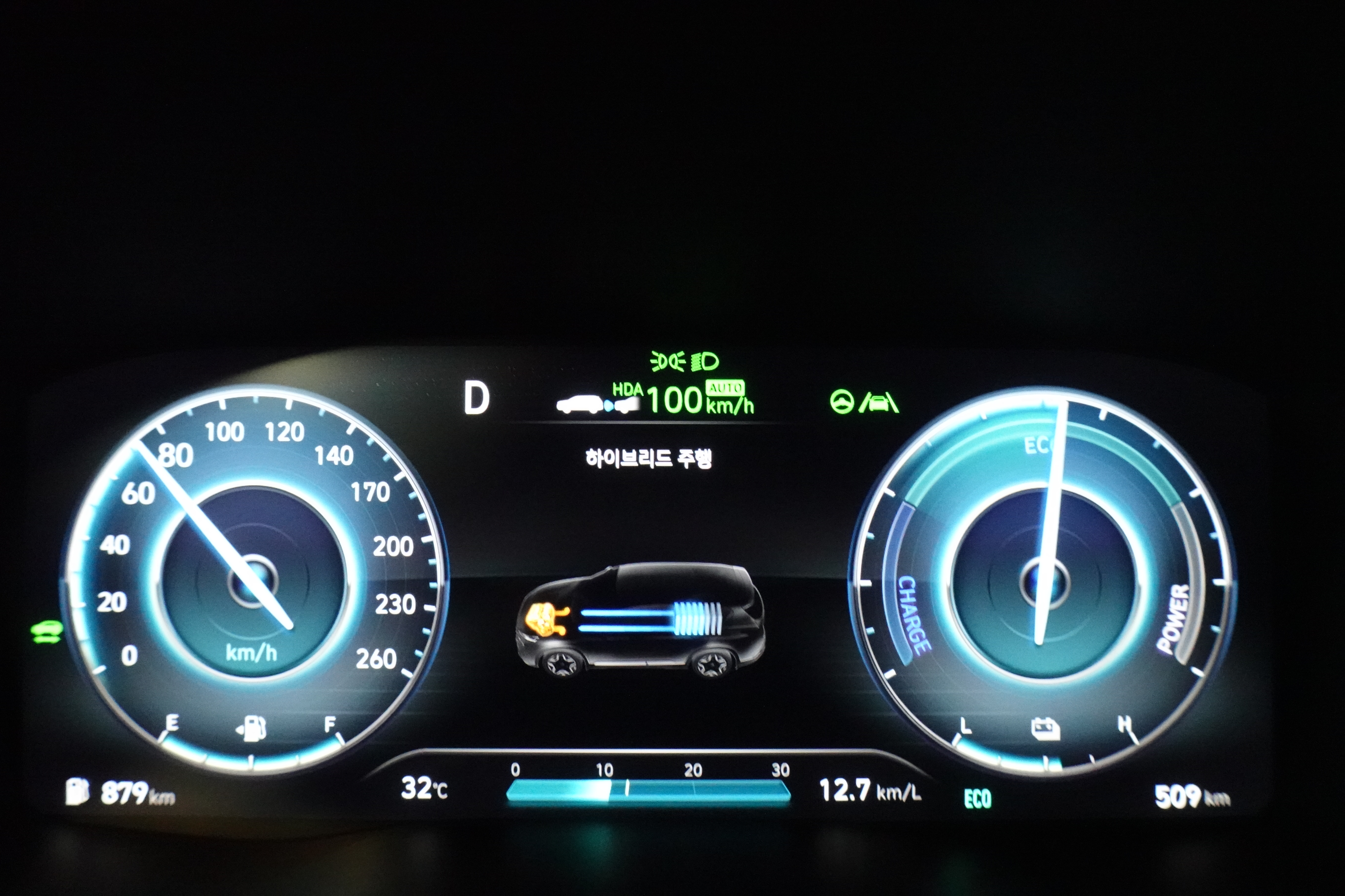 싼타페 하이브리드 모델을 출시하면서 쏘렌토 하이브리드보다 더 좋은 점에 대해서 이야기를 하지 않았지만 확실히 최초의 중형 하이브리드 SUV 모델이였던 쏘렌토 하이브리드 모델보다는 연비적인 부분에서 좀 더 좋은 세팅을 가지고 있다. 이전 쏘렌토 하이브리드 모델을 시승했을때와 비교하면 저속과 특히 고속주행에서 EV 모드의 개입이 좀 더 많았던 것을 볼 수가 있었다. 따라서 연비적인 체감도 쏘렌토 모델보다 좀 더 좋은 느낌이 있다.