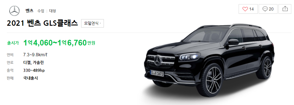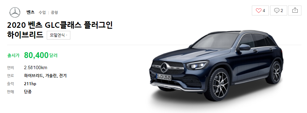 모델명은 GLB 35 AMG로 I4 싱글터보 엔진 사용, 풀타임 4륜구동, 자동(DCT) 8단 변속기가 적용 되어있다. 또 최대출력 306hp, 연비 9.5km/ℓ로 출시가 6,921만원이다.