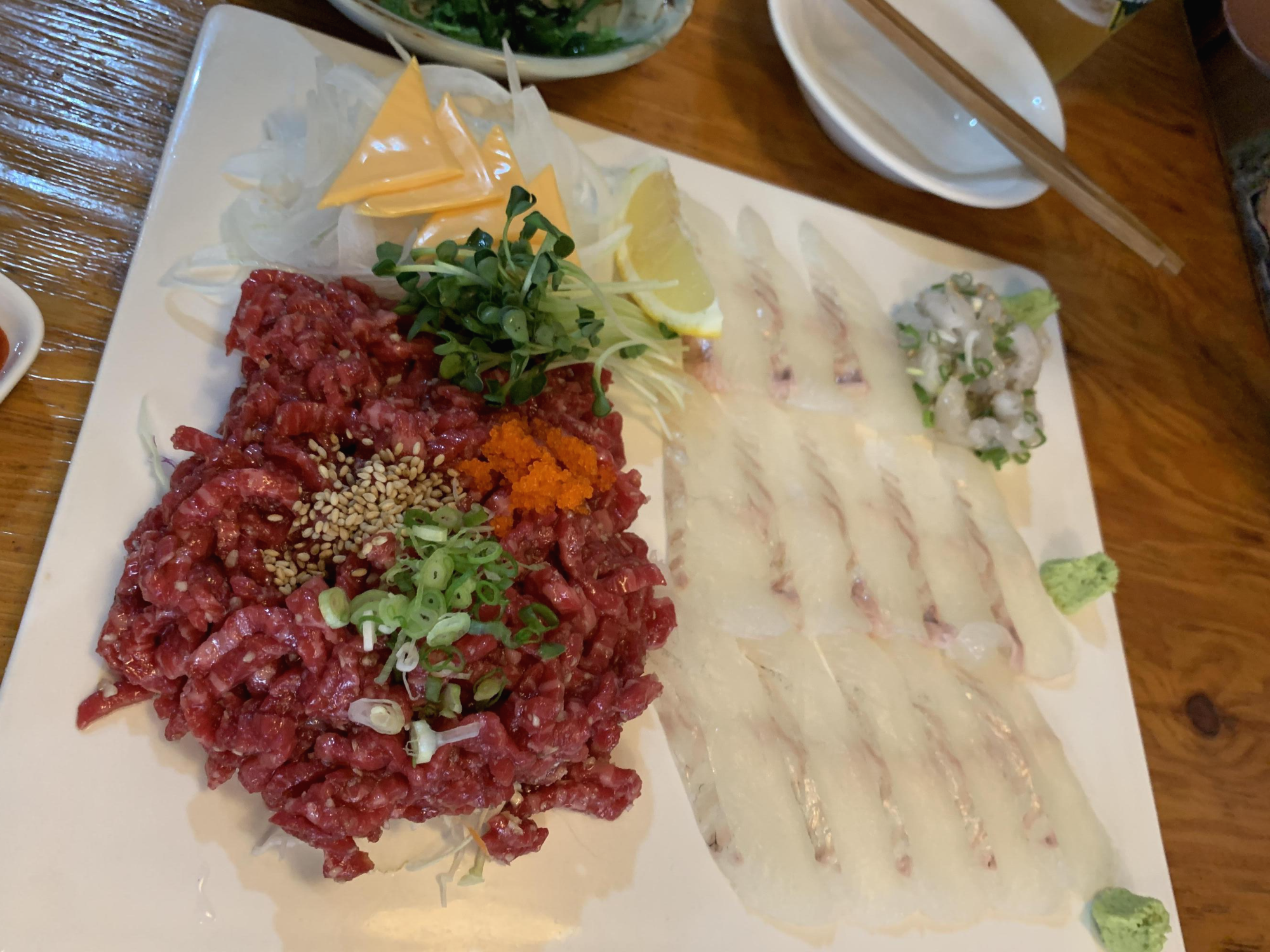 물론 두 가지 모두 시키면 되지만 횟집 전문점에서 육회가 맛있을거라 생각하는 사람들은 많이 없다. 이런 고민은 아토에서 크게 중요하지 않는다. 아토에서는 이렇게 광어 사시미에 한우육회 세트를 함께 판매하고 있어 취향이 다른 친구와도 함께 즐길 수 있고 2가지 맛을 동시에 느끼고 싶은 욕심 많은 사람들에게도 좋은 음식점이다.