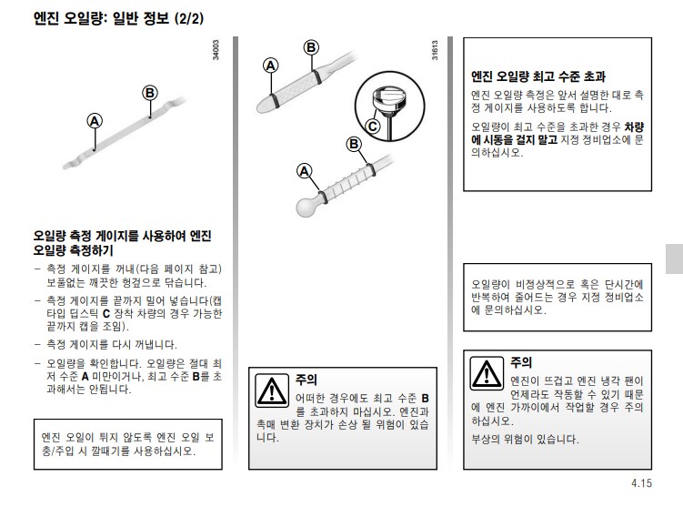 르노삼성 자동차 취급 설명서-차량 기능/점검/관리 및 엔진오일 규격 추천