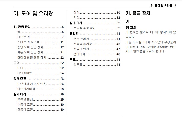 여기까지 쉐보레에서 제공하는 차량 취급 설명서를 각 항목별로 어떤 내용이 있는지 살펴봤다. 글자가 빼곡한 설명서를 읽는 것은 어떤 제품일지라도 쉬운일은 아니지만 작은 문제로도 안전에 문제가 생길 수 있는 자동차인 만큼 안전한 자동차 점검을 위해 꼭 한번정도 차근차근 읽어보는 것을 추천한다.
