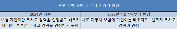 ::::: 부부 특약 가입 시 무사고 경력 인정