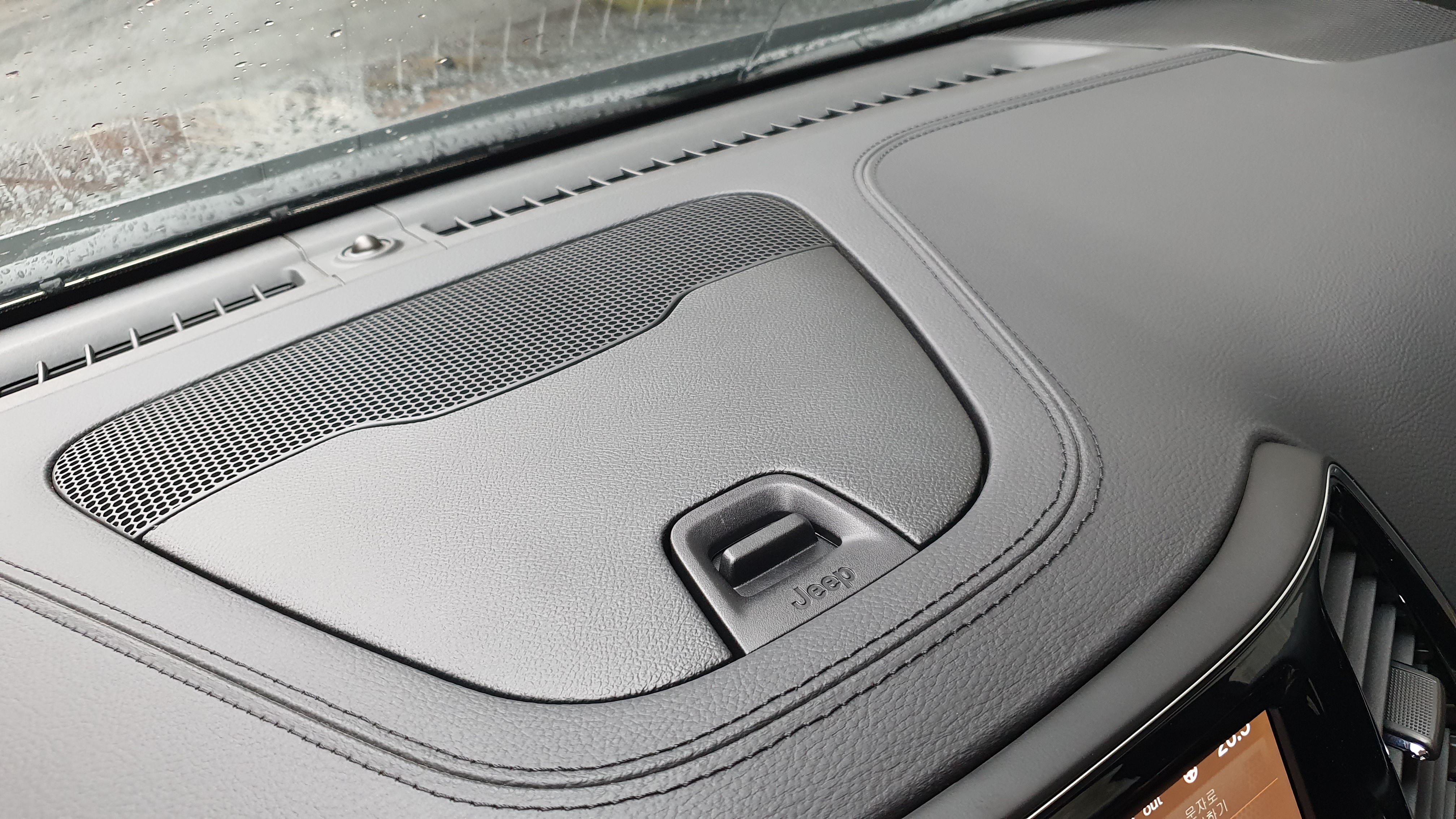 체로키 대쉬보드에는 히든 수납공간이 있다. 이 공간에는 선글라스 같은 소지품을 보관하기 좋으며 스마트폰만 잘 세워두면 거치대로 사용해도 나쁘지 않다. 하지만 애플 카플레이와 안드로이드 오토를 지원하기 때문에 추천하지 않지만 다용도로 사용할 수 있는 이 공간은 생각보다 활용도가 높다.