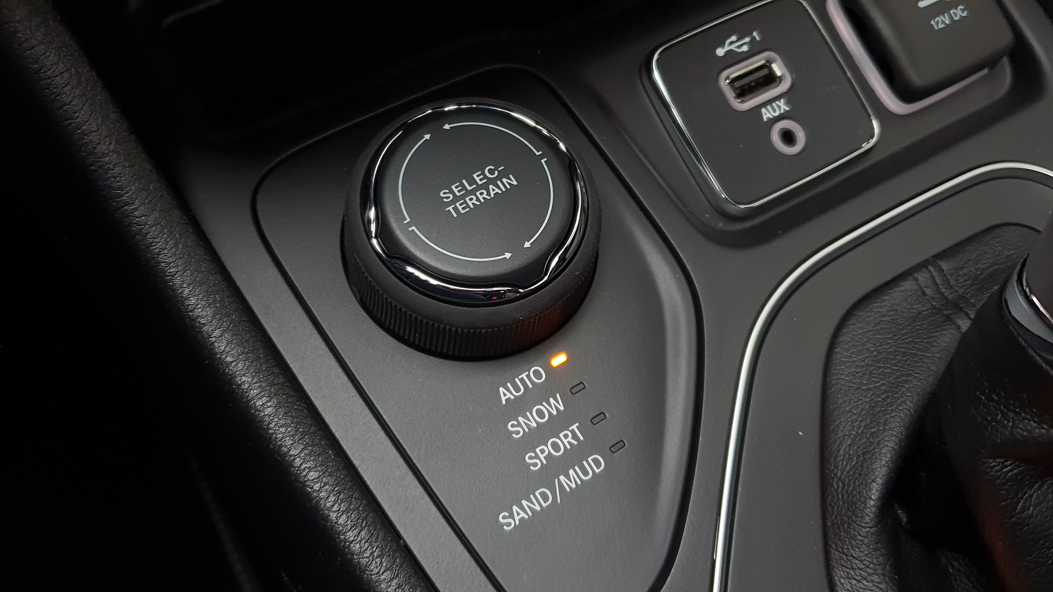 지프 체로키의 성격은 드라이브 모드에서도 확인할 수 있다. 터레인 모드는 오토 모드를 기본 제공하고 있으며 스노우 / 스포츠 / 샌드&머드 기능이 추가되어있어 상황에 따라 셀렉트 터레인 다이얼을 돌려주면 변경이 가능하다. 4X4 4륜 구동을 지원하고 있으며 9단 자동 변속기로 고속도로 주행에서도 생각보다 괜찮은 연비를 보여주기도 한다.