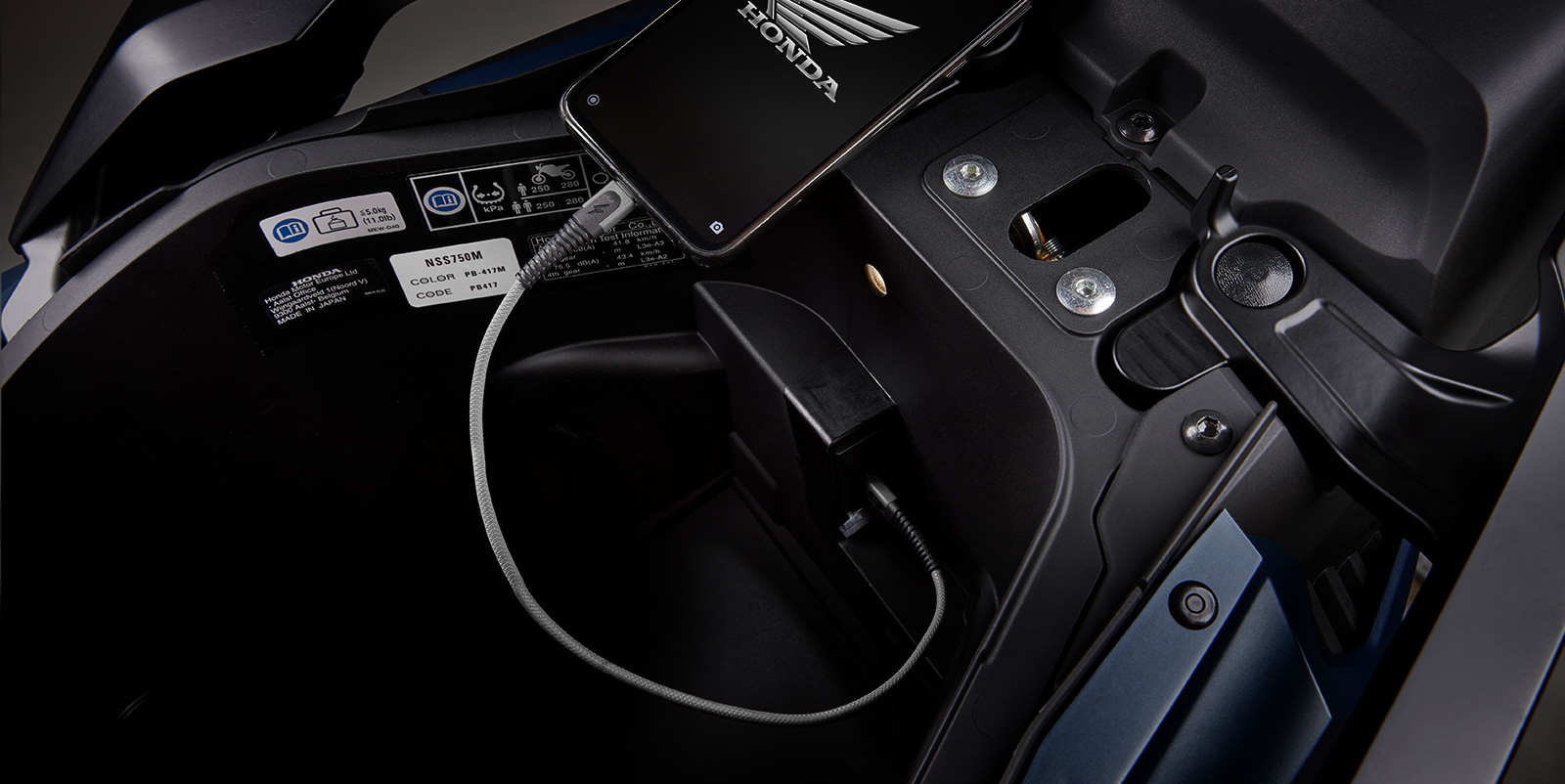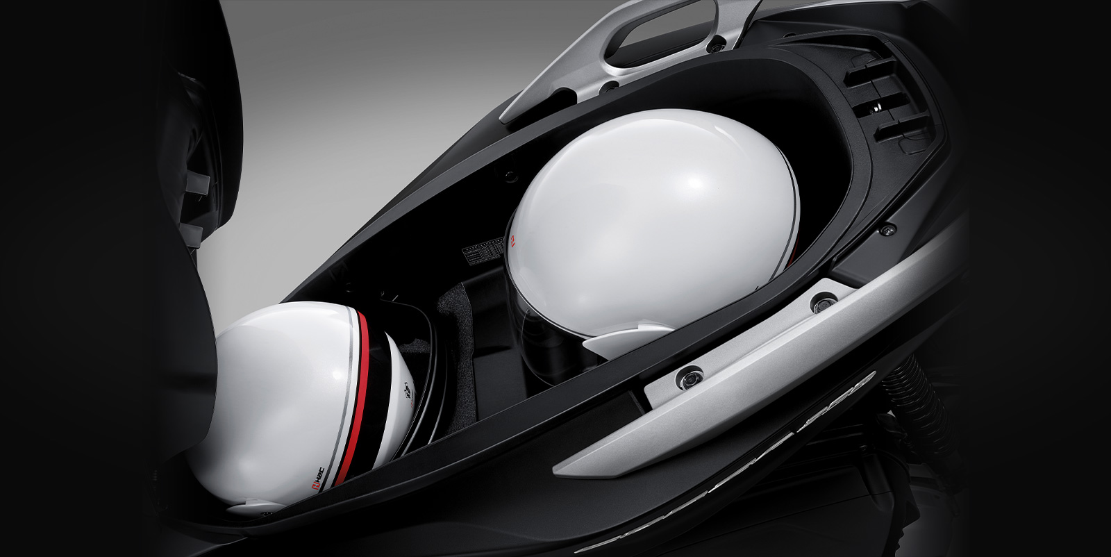 수납공간으로는 풀페이스 헬멧 2개가 수납가능한 48L 대용량의 러기지 박스, 스마트폰 충전이 가능한 USB 소켓이 있는 4.5L 프런트 이너박스가 탑재되어있다.