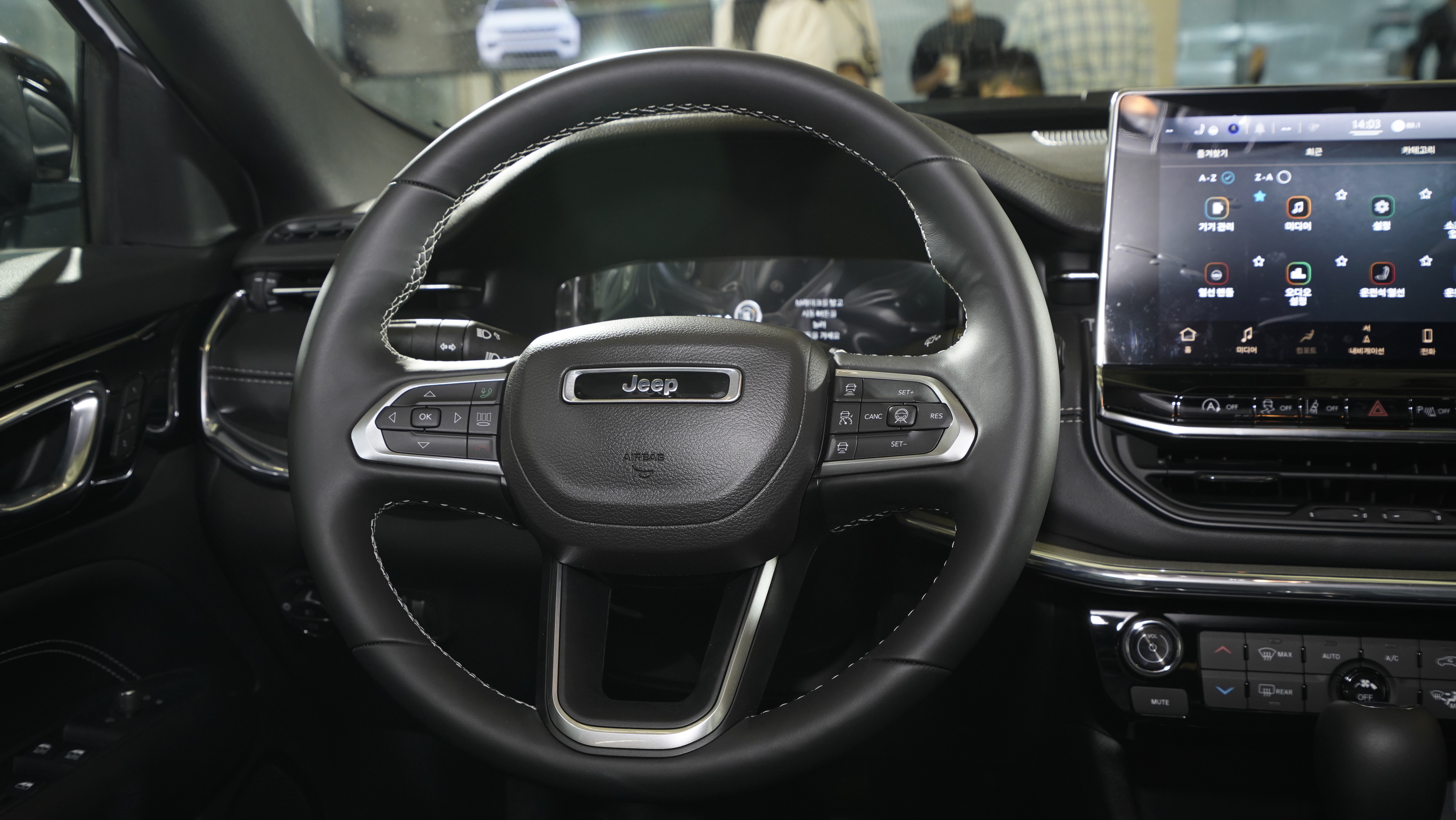 또 하나에 특징이 있다면 바로 스티어링 휠이다. 새로운 다기능 스티어링 휠은 보다 컴팩트한 디자인과 새로운 형식의 JEEP 앰블럼을 적용하고 있으며 가죽 소재에 열선 스티어링 기능까지 포함되어 있다. 또한 1열 시트에는 열선과 통풍 시트를 기본으로 적용하여 편의 사항을 높혔으며 컴패스 모델 최초로 2열 시트에도 열선 시트가 적용되어 있다. 또한 운전석에는 포지션 메모리 기능이 포함되어 있는 것이 특징이다. 2열 하단에는 230V 인버터와 12V 시거잭이 포함되어 있어 캠핑 및 차박을 위한 사람들에게 좋은 편의 기능을 선사한다.