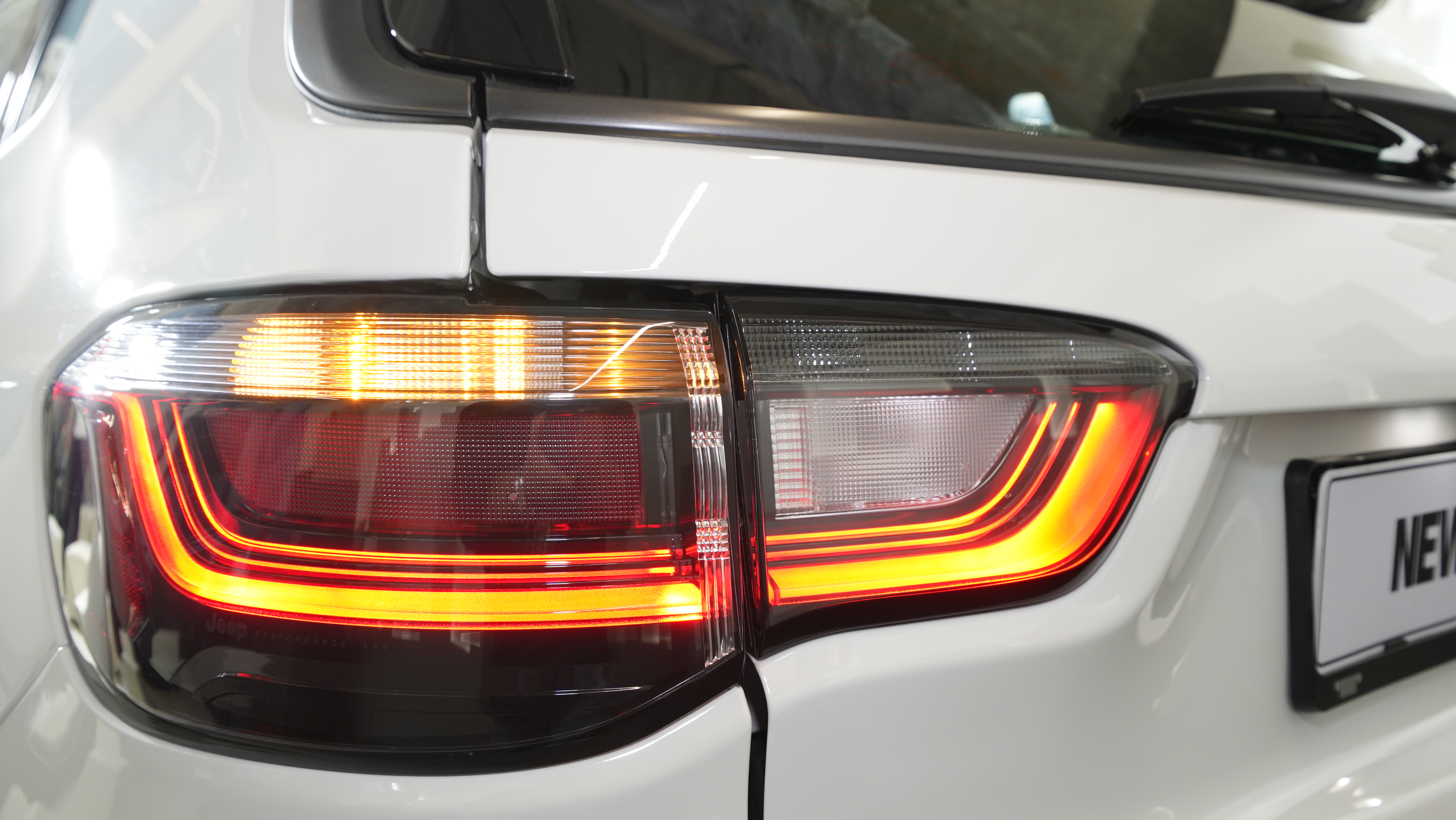 우선 지프의 상징인 새로운 세븐 슬롯 그릴은 모든 지프 차량에서 볼 수 있는 공통적 디자인 아이덴티티이다. 이번 부분변경 모델에서는 블랙 하이 글로시로 감싸져있어 좀 더 입체적이며 그릴이 더욱 웅장하고 막혀있는 것이 특징이다. 상단 세븐 슬롯 그릴은 막혀있지만 엔진 냉각을 위하여 하부 그릴이 좀 더 커진 모습을 볼 수가 있다.