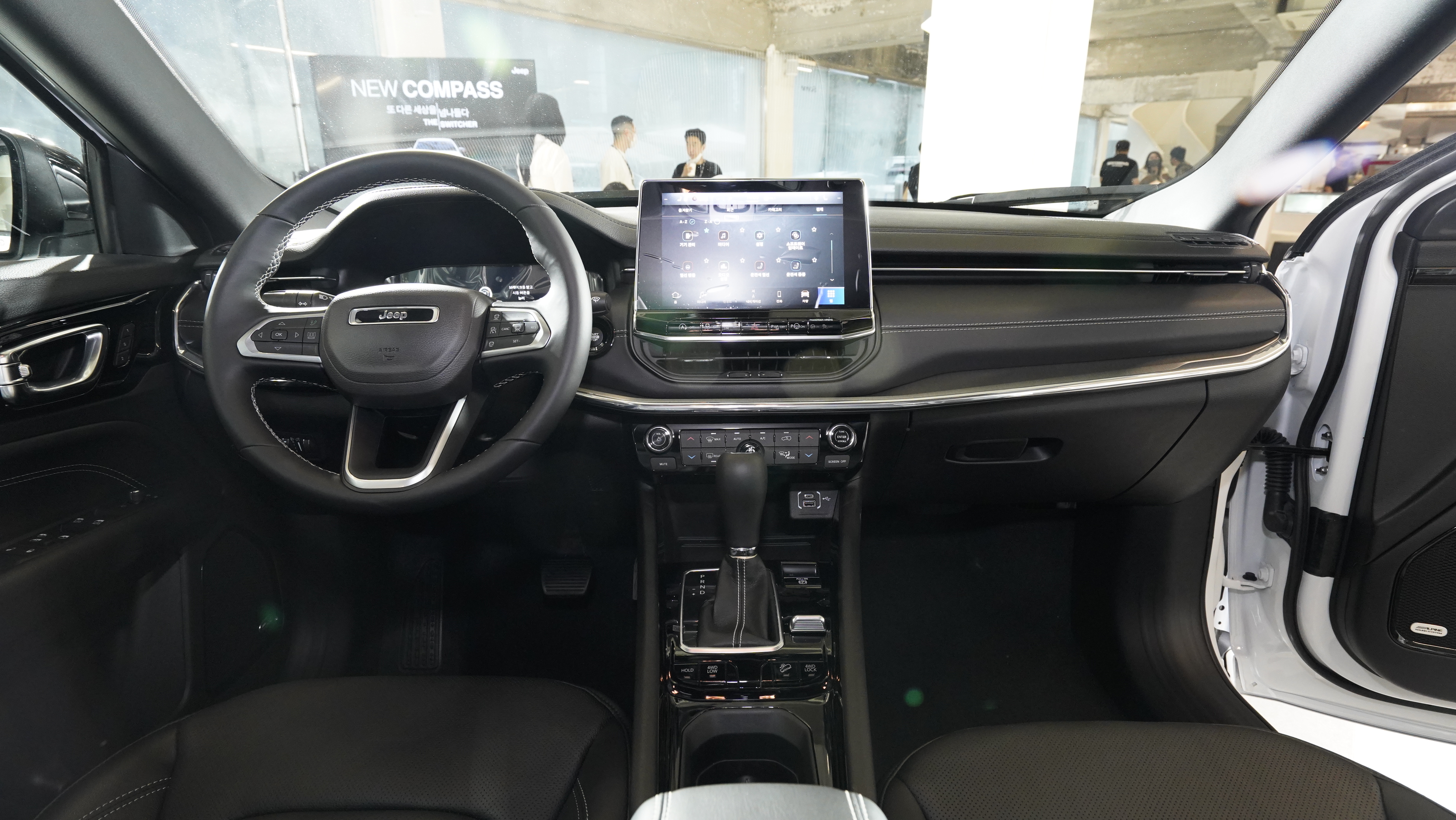 기존 2세대 컴패스 모델에서 가장 아쉬운 부분은 사실 인테리어 디자인과 편의 기능이였다. 하지만 이번 뉴 컴패스 모델에서는 좀 더 진보한 디자인을 선보이고 있다. 기존 대비 수평적 레이아웃은 차량이 좀 더 넓어 보이는 듯한 모습을 보여주고 대시보다 패널을 따라 슬림한 송품구는 인테리어에 잘 적용되어 있다. 또한 S 트림에 적용되어있는 10.25인치 계기판과 10.1인치 터치 스크린을 적용하여 편의 기능 뿐만 아니라 수입 준중형 SUV 경쟁 모델보다 좋은 모습을 보여준다.
