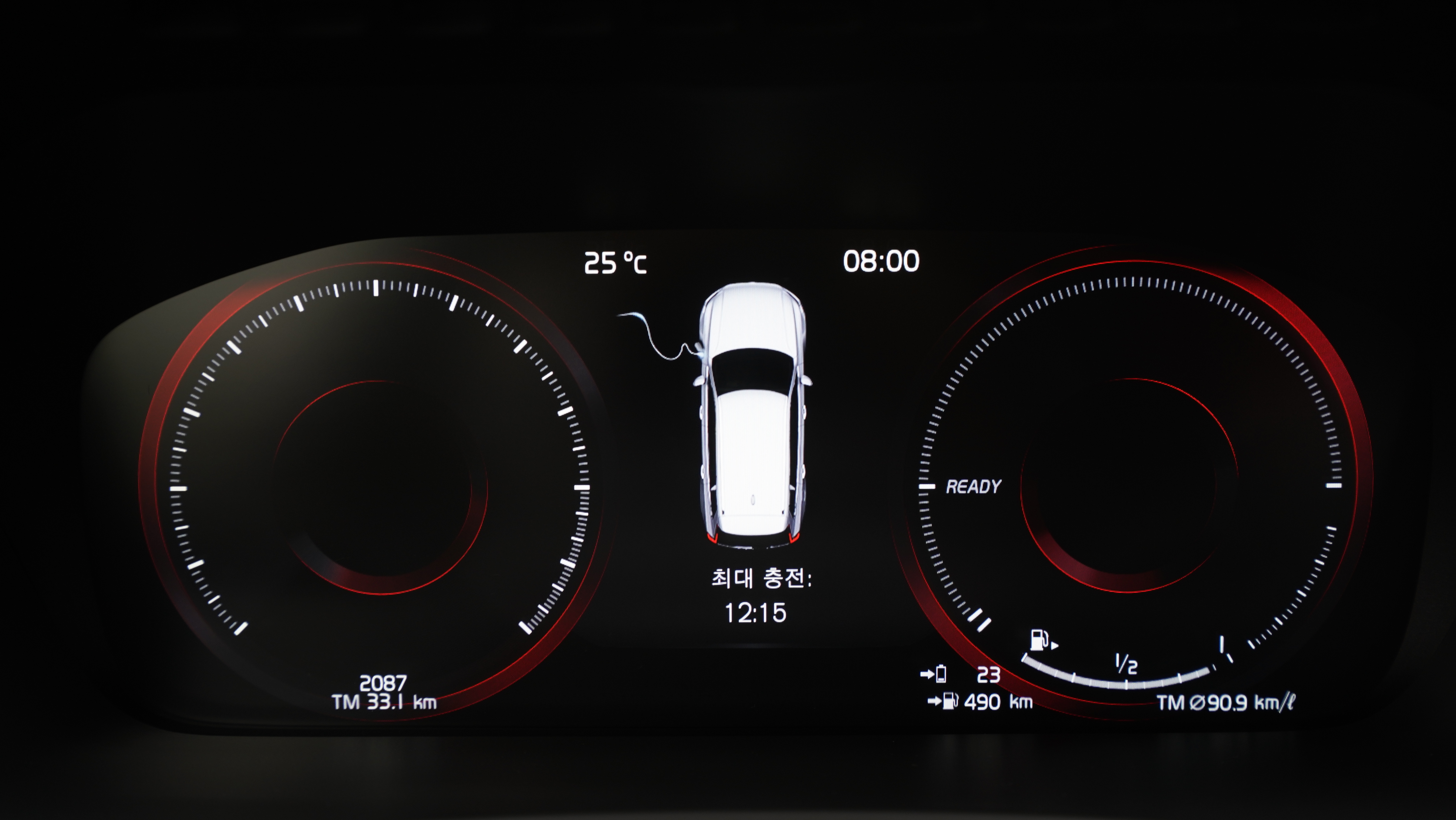 총 주행거리는 전기모터로 48km 주행이 가능했는데 실제 주행해보면 표시된 거리와 거의 비슷하게 전기모터로 주행이 가능하기 때문에 하루에 막히는 도로를 편도 30km정도 주행하는 사람이라면 집에서 충전하고 회사에서 충전할 수 있다면 한 달에 주유 한 번도 안하고 출 퇴근을 할 수도 있을 정도로 전기모터는 열심히 일을 하는 편이다.