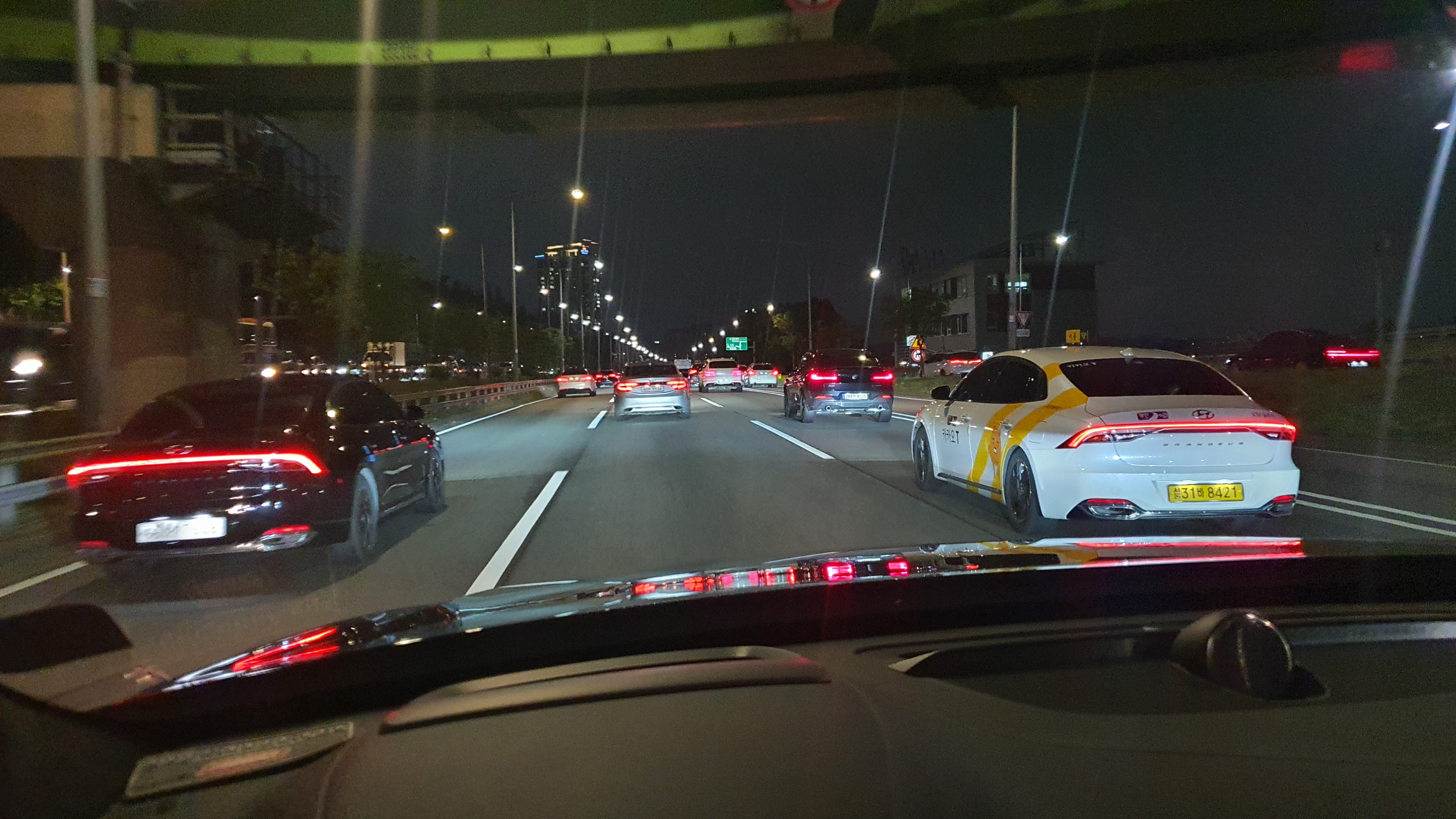 막히지 않고 그럭저럭 주행하다 올림픽대로에 들어서자마자 정체가 시작되었다.