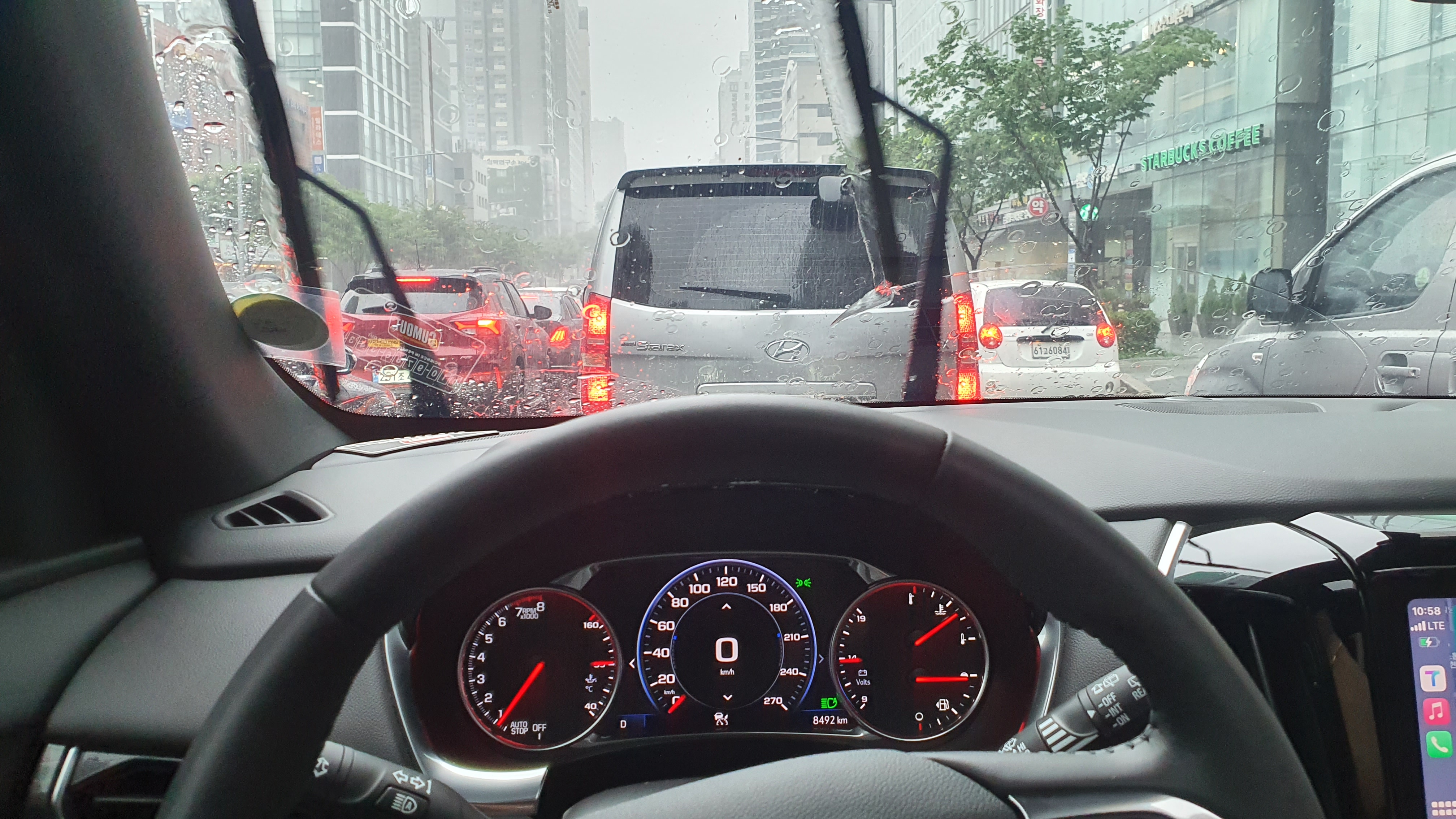 엄청난 폭우로 강남을 빠져나오는데만 40분이상 소요가 되었고 경부고속도로 초입에는 많은 비로 꽤 많은 정체를 보여줬다. 고속도로에서 평소에 느껴지지 않았던 차량에 묵직한 주행이 꽤나 인상적이였고 안정감에 있어서도 만족스러운 수준이였다.