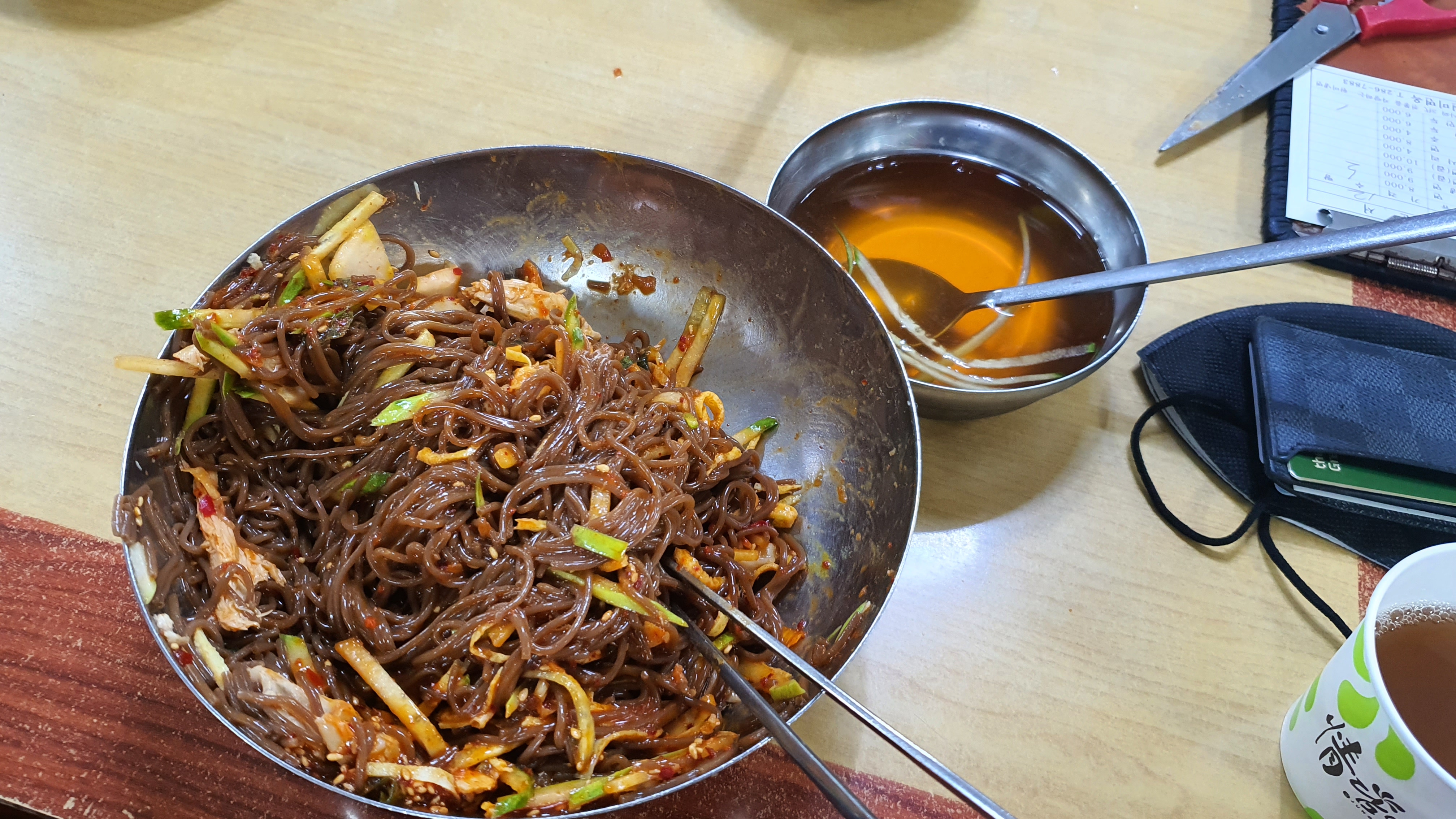 자리에 앉으면 주는 메밀 삶은 물은 사실 고기 육수로 착각하고 먹어서 인지 뭔가 밍밍하고 맛이 없는 느낌이다. 여름이라 그런지 찬물이 생각났는데 찬물은 셀프라는 문구가 가게 곳곳에서 만나볼 수가 있었다.