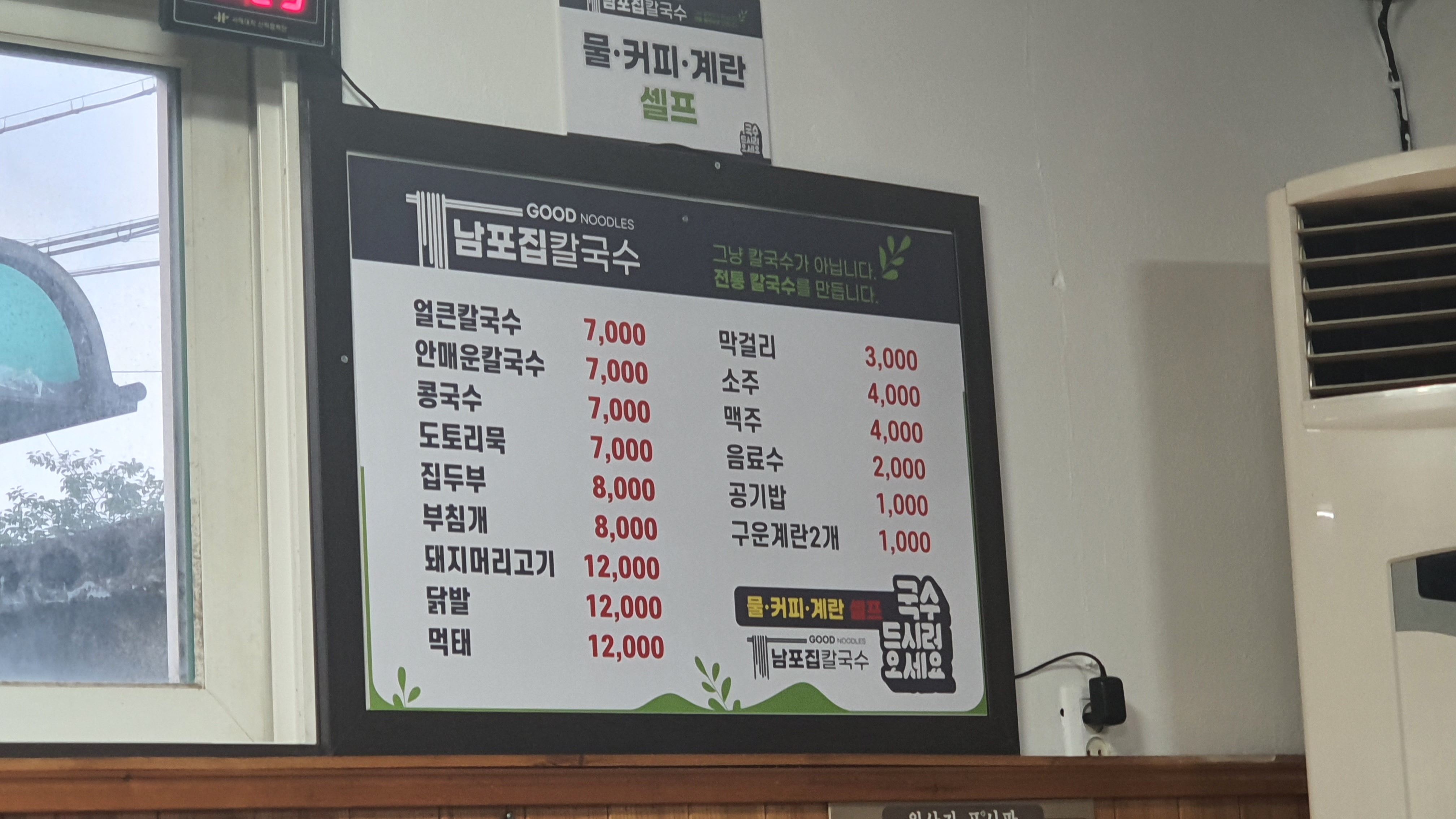 보령 남포집 칼국수는 메인 메뉴가 칼국수로 이뤄어져있다.