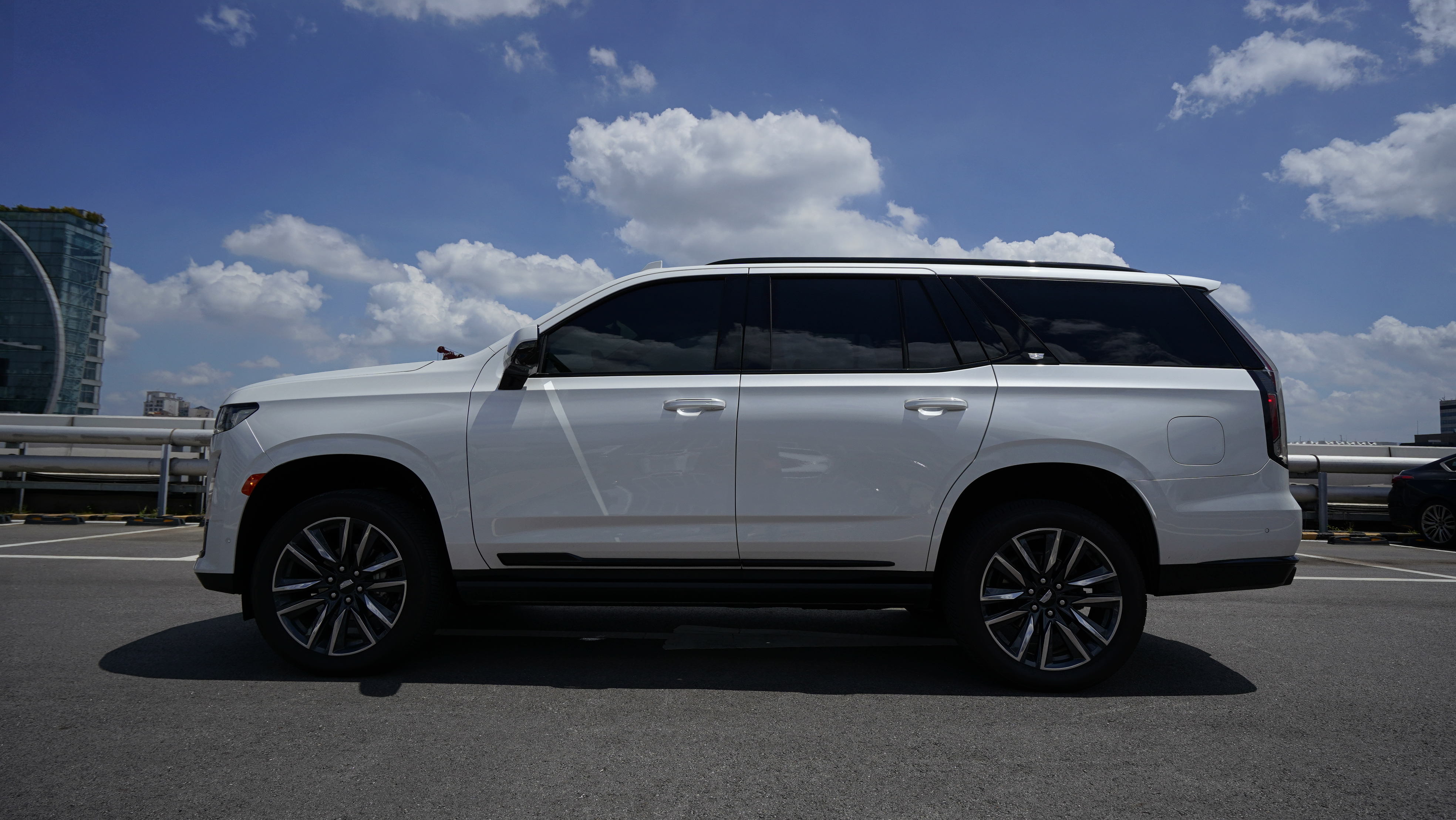새로워진 5세대 에스컬레이드는 2열과 3열이 이어지는 C필러를 블랙으로 얇게 처리해서 1열에서 3열까지 하나로 이어지는 듯한 글래스를 보여주고 있어서 좀 더 스포티한 느낌을 준다. 여기에 이전 세대에 크롬 라인들을 삭제해서 좀 더 깔끔한 이미지와 휠 디자인에 변화를 보여주고 있다. 이전 세대 전장길이 5,180mm보다 더 길어진 5,380mm의 전장과 전폭 2,060mm로 4세대의 2,045mm보다 더 커진 차체로 이전 세대도 웅장했지만 이번 5세대 모델은 더욱 웅장해진 모습을 보여준다.