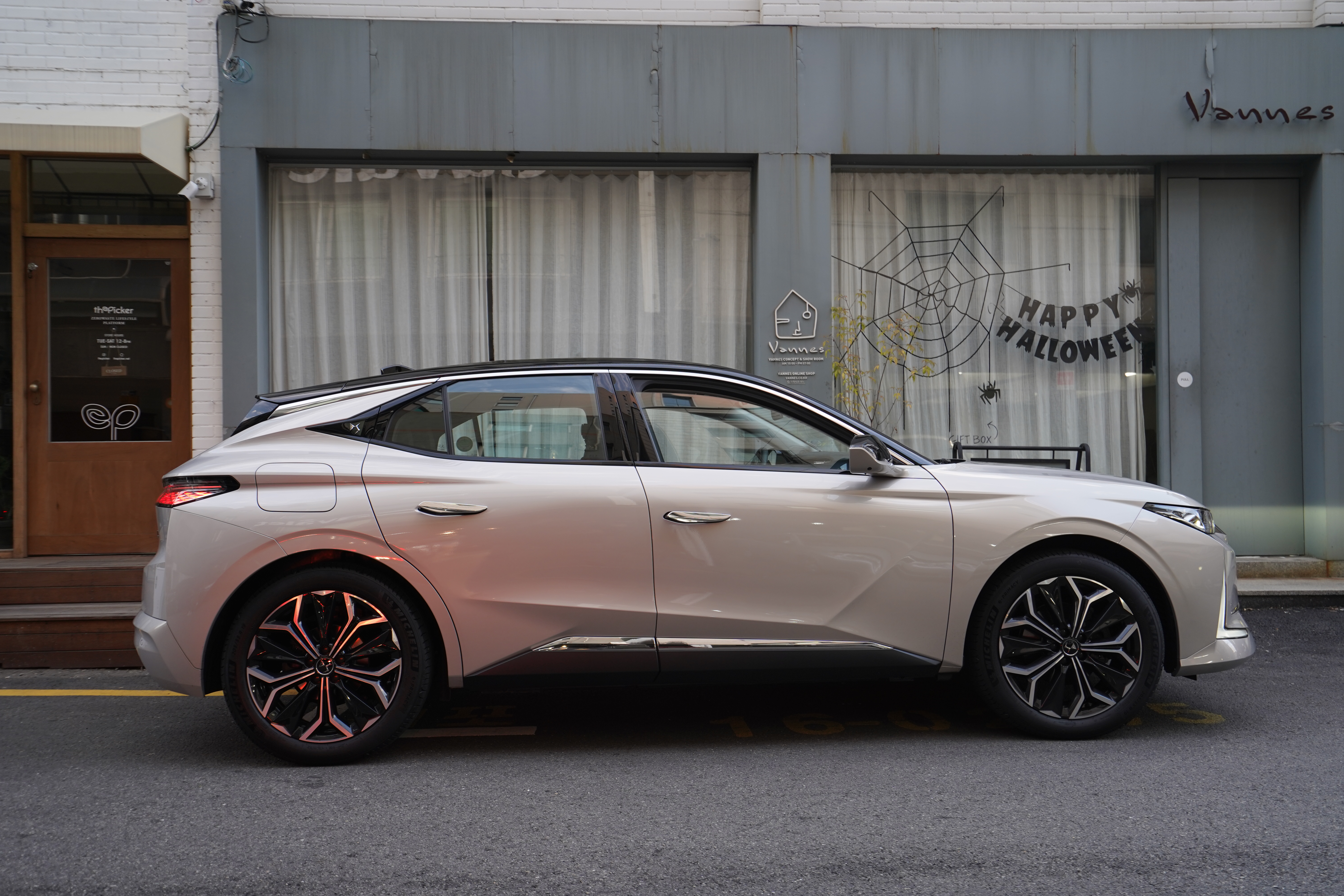 DS4 차량 측면 디자인 또한 독특한 편이다. 휠 디자인도 독특하지만 무엇보다 DS3에서도 보여줬던 플러시 도어는 이 차량 측면 디자인을 좀 더 특별하게 만들어준다. 여기에 C필러 라인에 DS 엠블럼 그리고 차량 측면의 독특한 사이드 캐릭터 라인까지 이 차의 디자인은 그 어디에서도 심심하다고 느낄 부분이 없다.