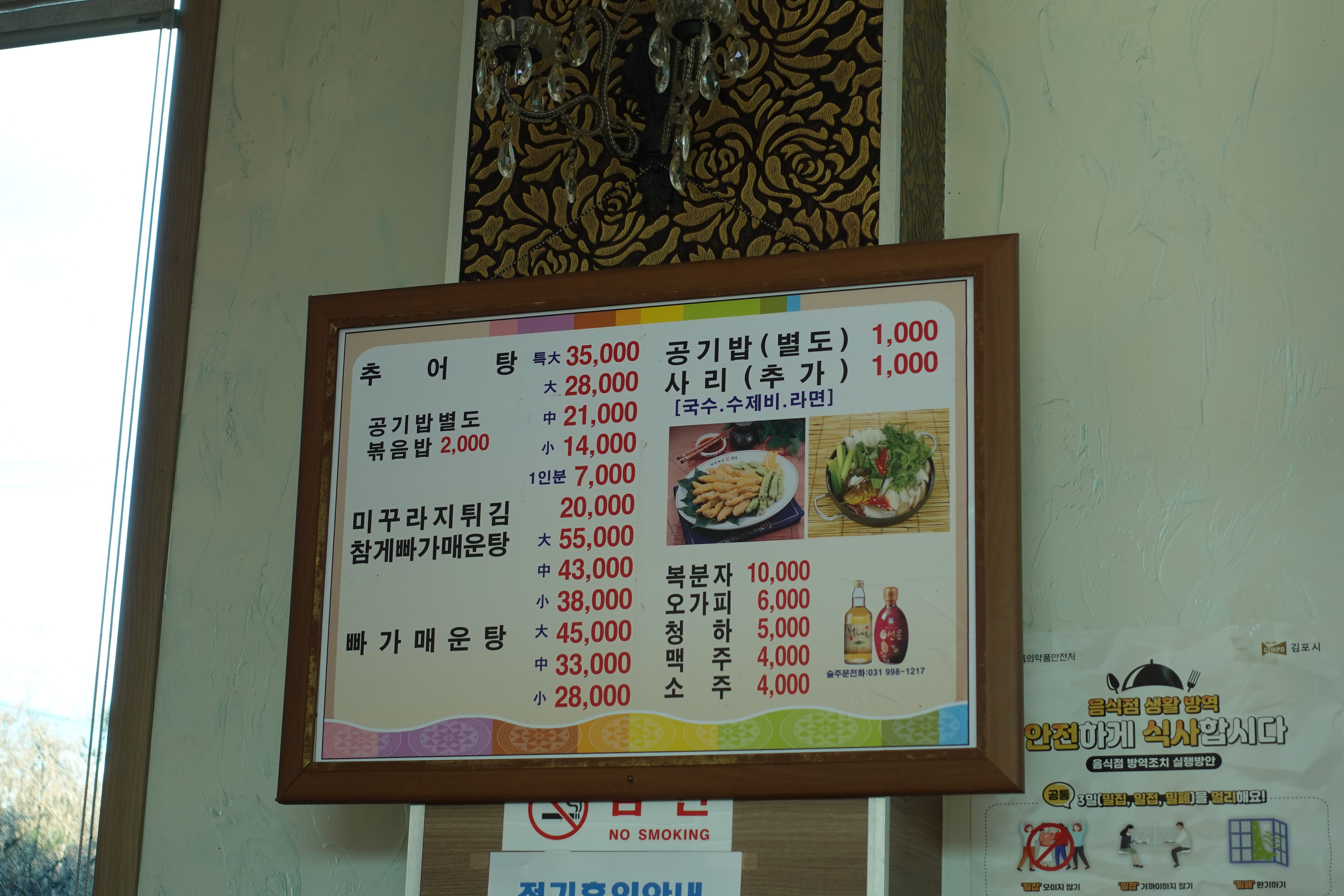 강화도 새벽 드라이빙을하고 이 곳으로 모여 아침식사를 하고 헤어지는 일정으로 자주 왔는데 처음에는 아침 메뉴로 그것도 내가 좋아하지 않은 추어탕을 먹는 다는 것이 꺼려졌던 기억이 있다. 주차장도 나름 넓은 편이고 무엇보다 좌석이 엄청 넓다는 것이 이 곳에 장점이다.
