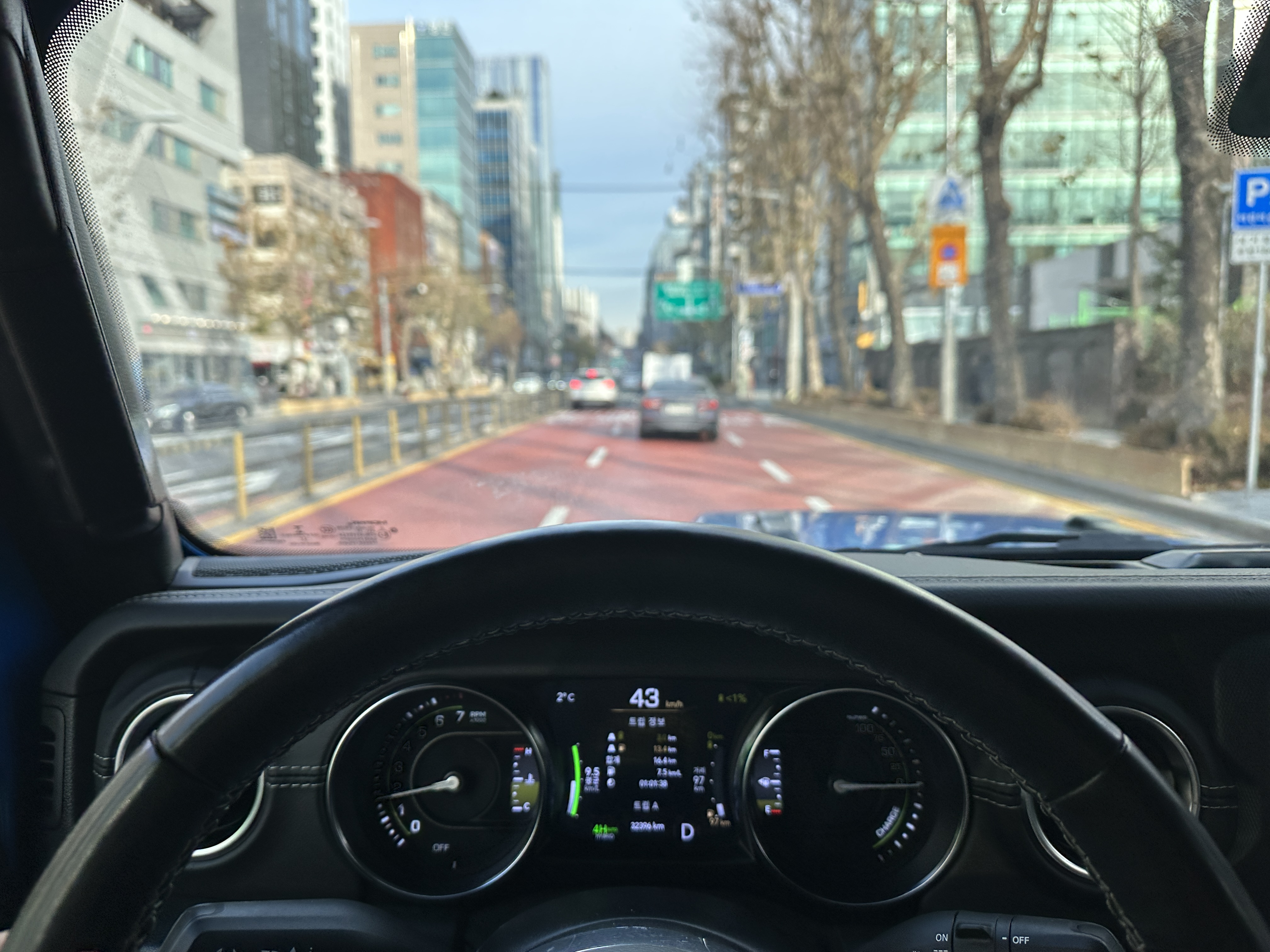 첫 느낌은 아날로그 감성이 없어진 배신감이 느껴지지만 타면 탈 수록 지프 랭글러만의 아날로그 감성 + 무언가를 느낄 수 있다.